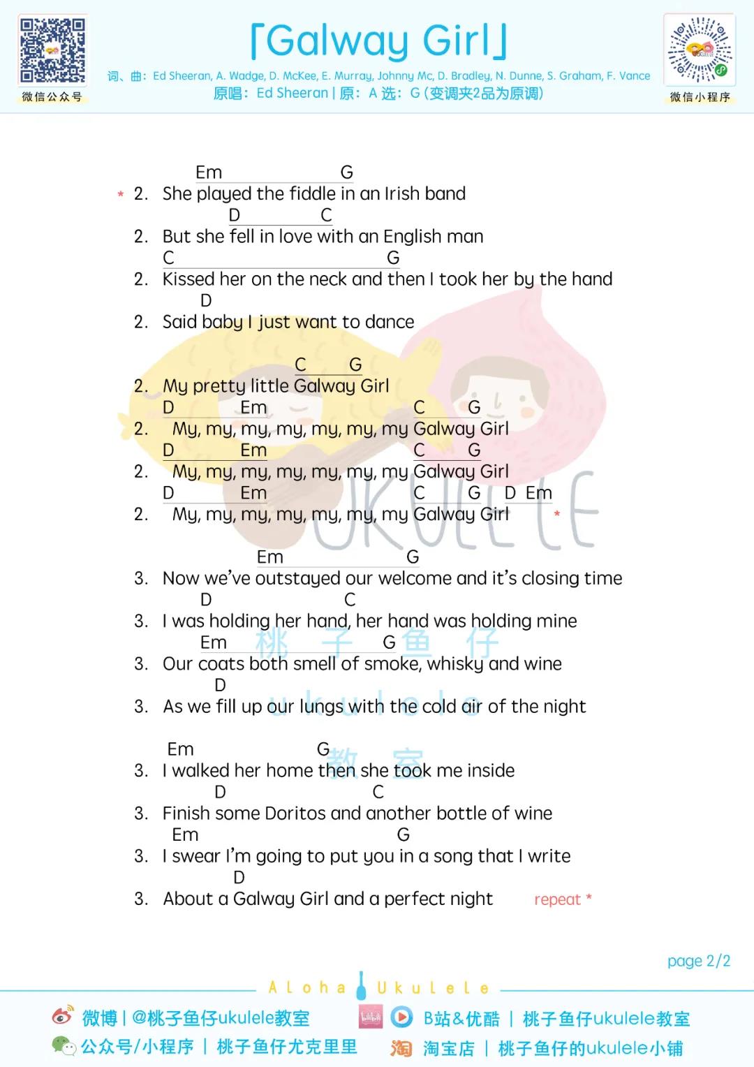Galway Girl吉他谱 - Ed,Sheeran - G调吉他弹唱谱
