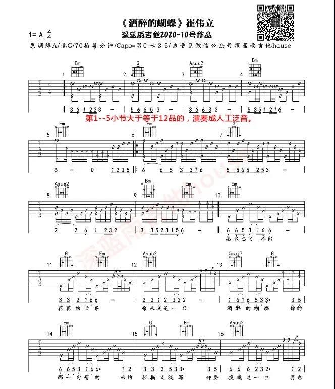 酒醉的蝴蝶吉他谱 - 崔伟立 - A调吉他弹唱谱