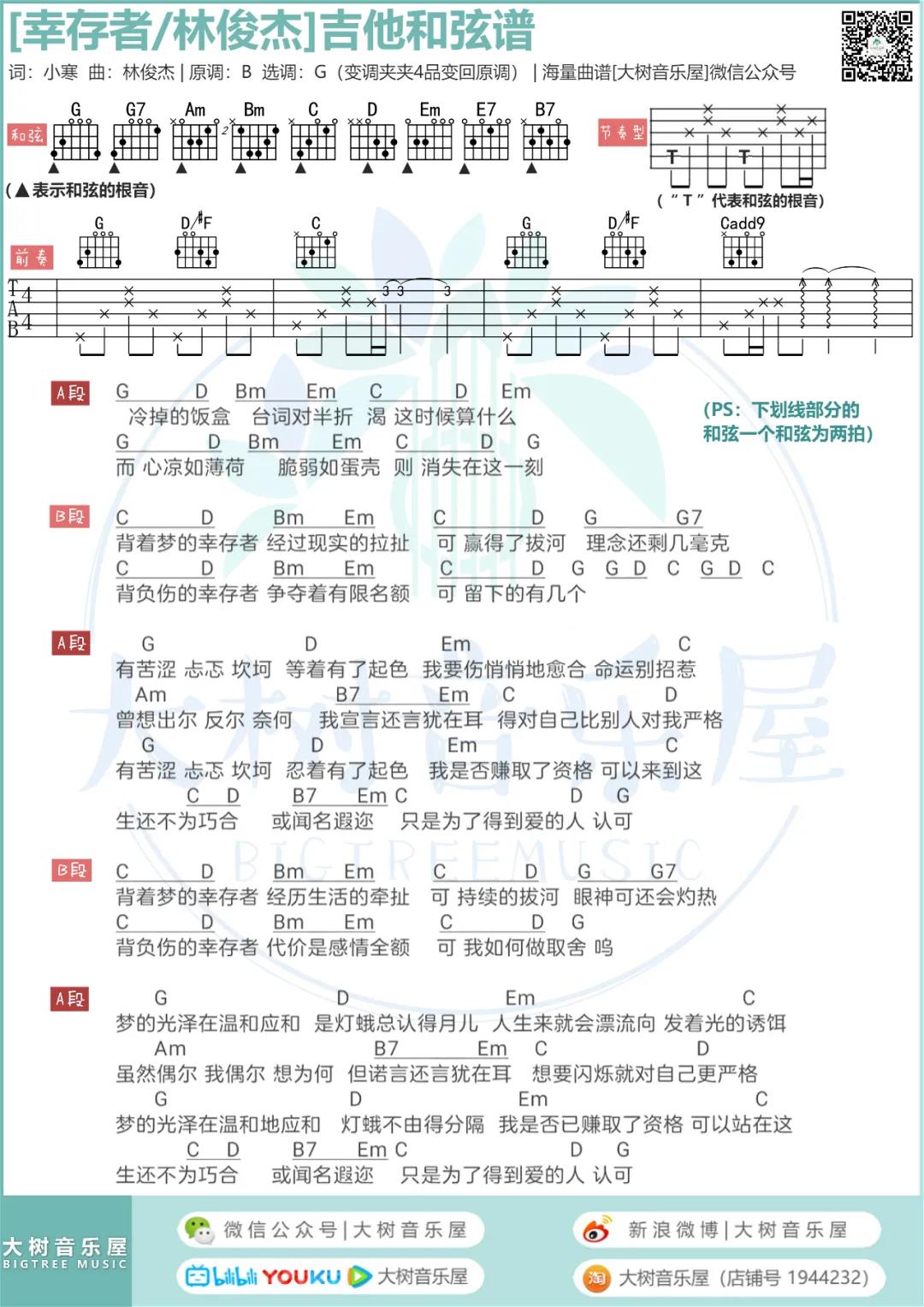 幸存者吉他谱 - 林俊杰 - G调吉他弹唱谱