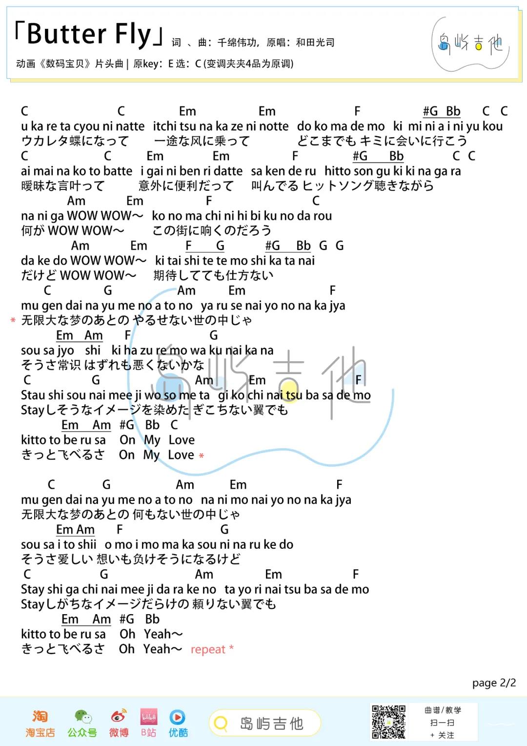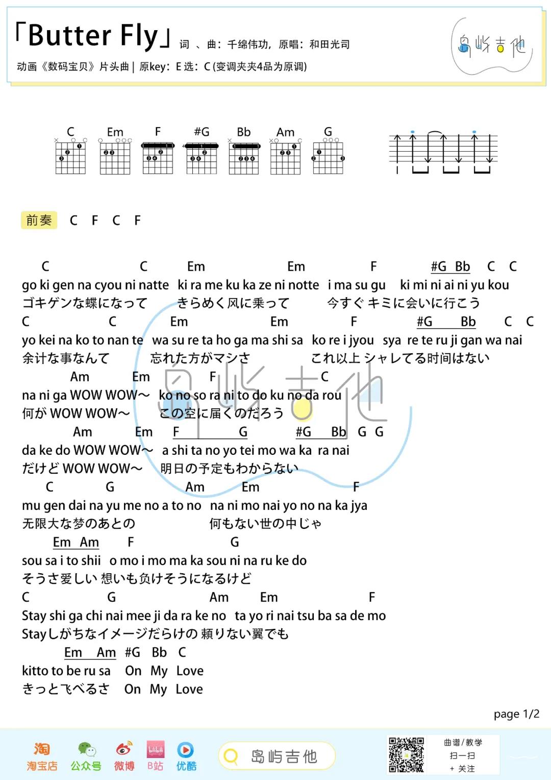 曲谱介绍: 《数码宝贝》20周年主题曲「ButterFly」