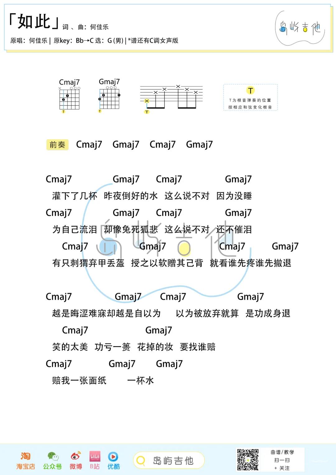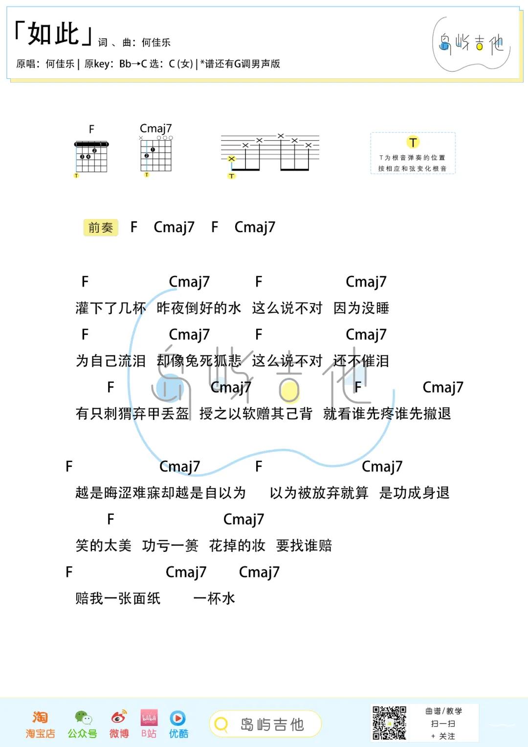 曲谱介绍: 《如此》是发行于2017年12月的一首国语流行歌曲,由何佳乐作词、作曲并演唱,所属专辑为《十万个自己》。