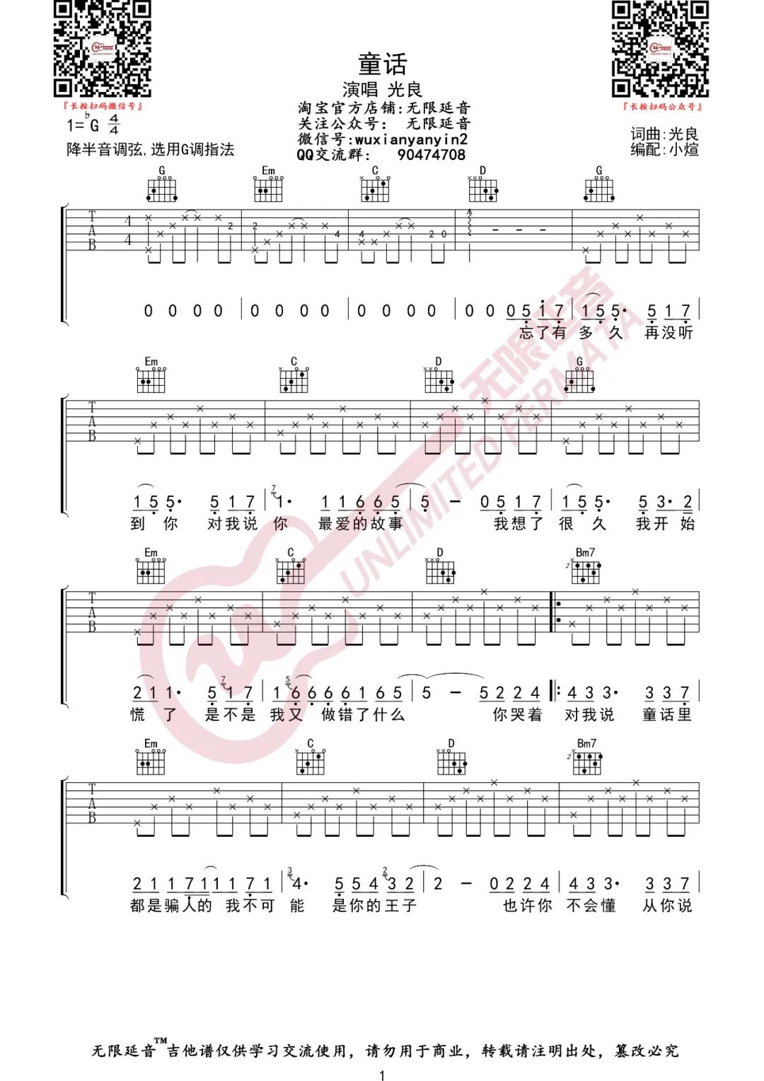 童话吉他谱 - 光良 - G调吉他弹唱谱
