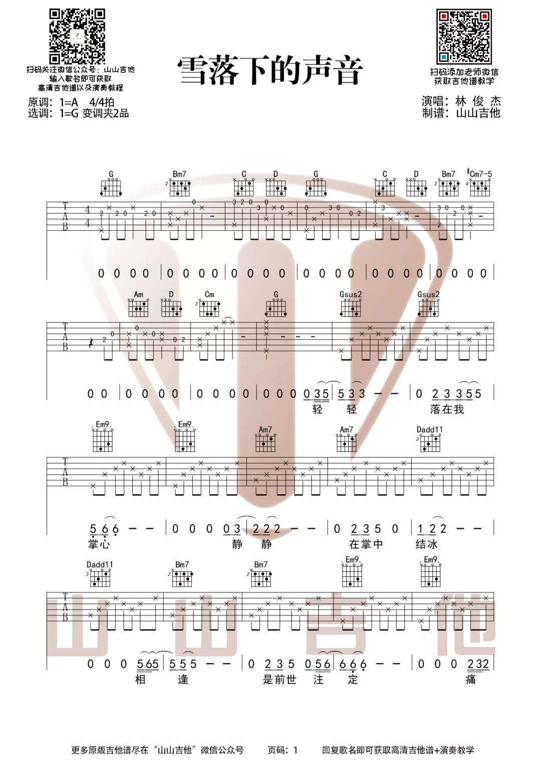 雪落下的声音吉他谱 - 林俊杰 - G调吉他弹唱谱