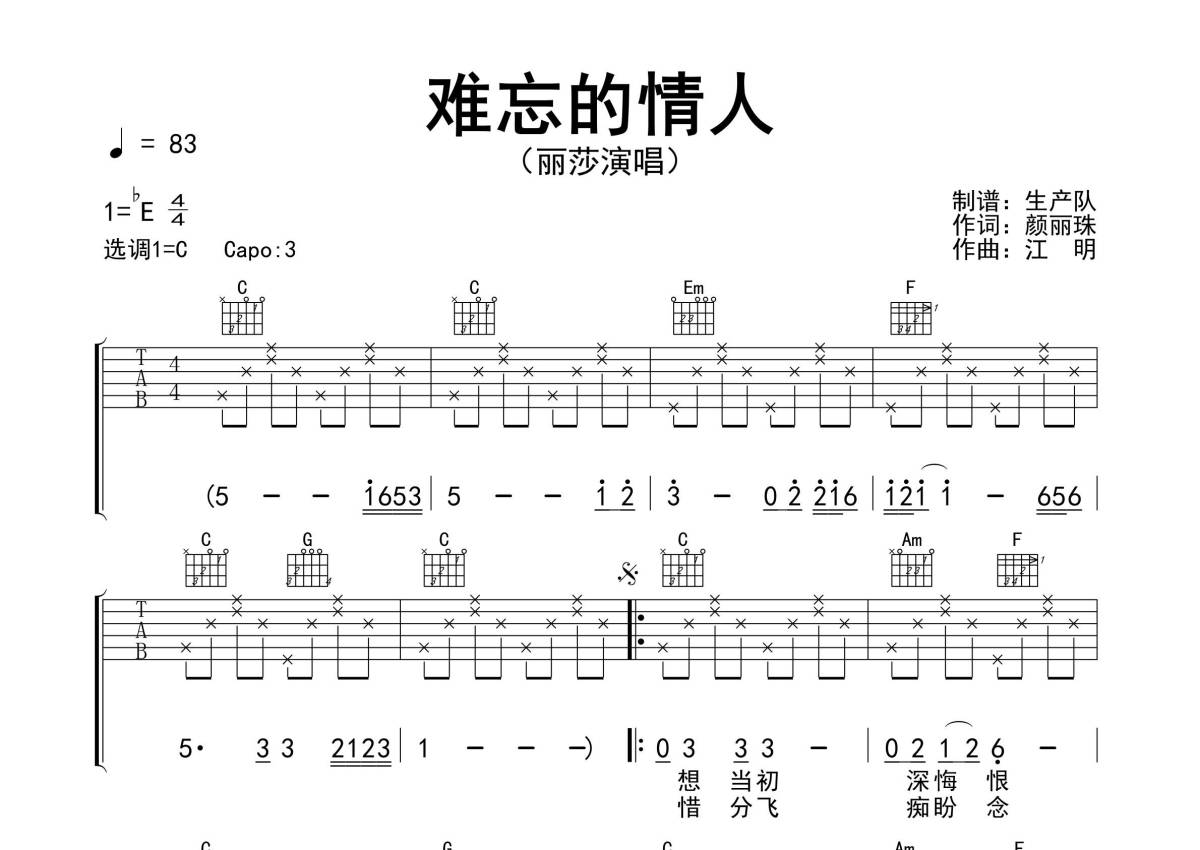 • 难忘的情人吉他谱 - 丽莎 - C调吉他弹唱谱第1张