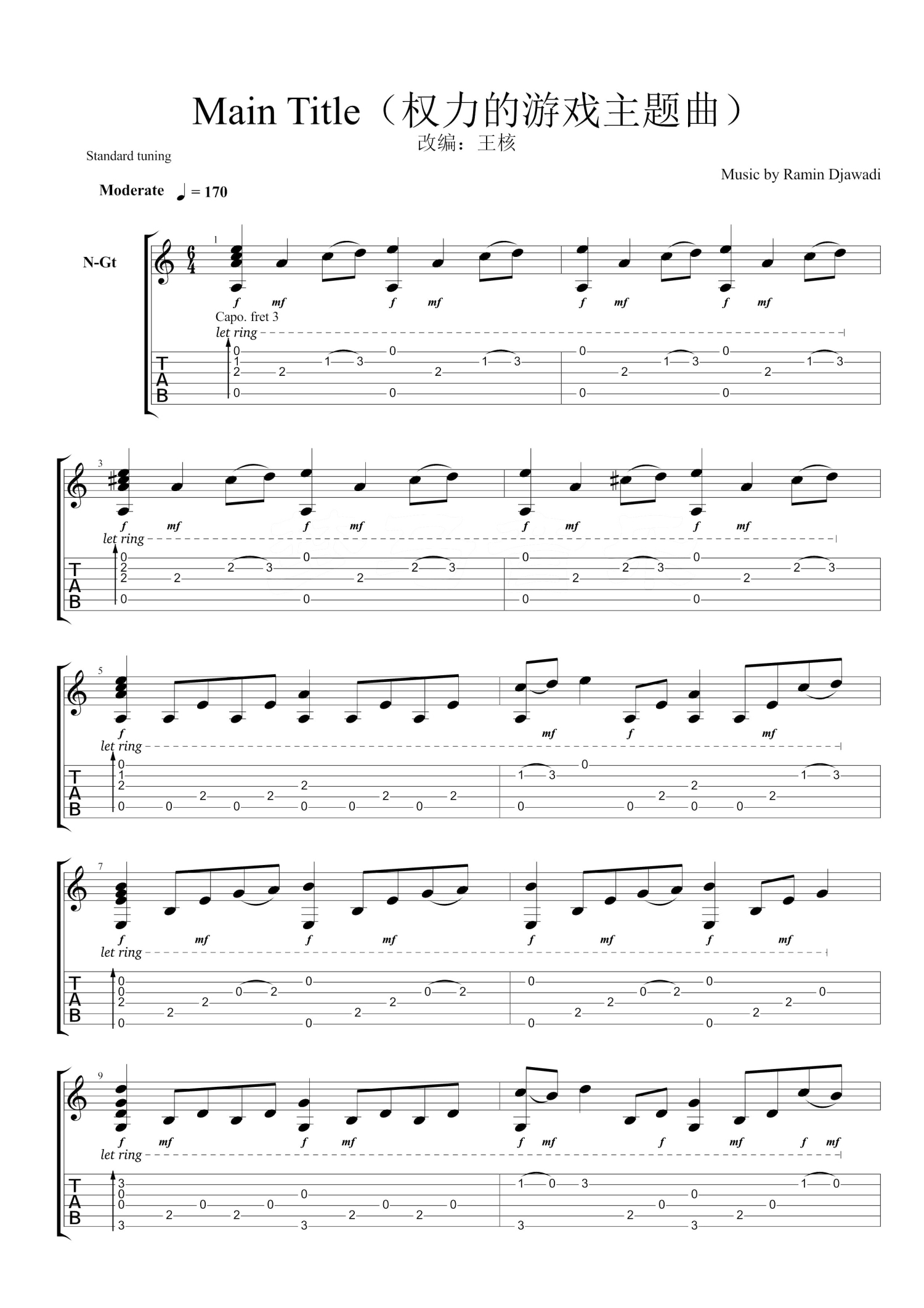 曲谱介绍: 王核《权力的游戏》吉他谱_吉他独奏谱