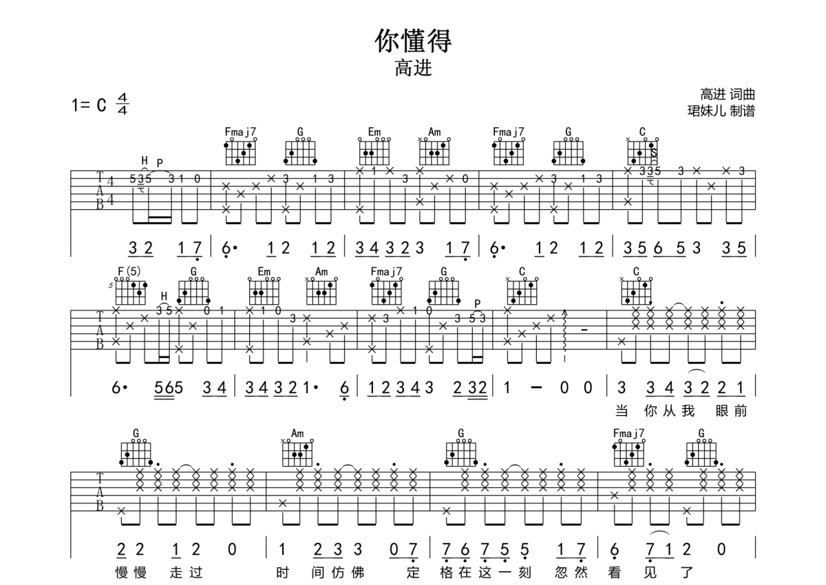 当前位置:琴谱网>吉他弹唱>你懂得