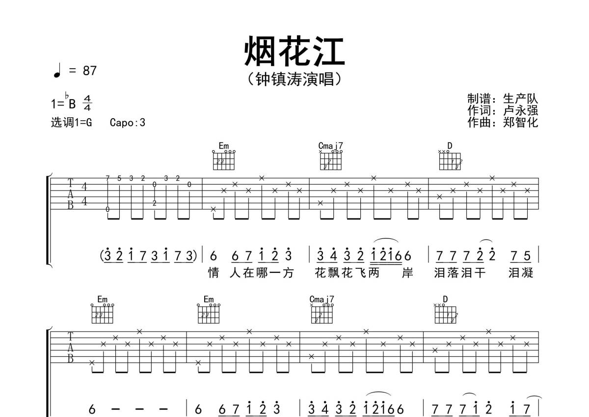 • 烟花江吉他谱 - 钟镇涛 - G调吉他弹唱谱 - 精编完美版第1张