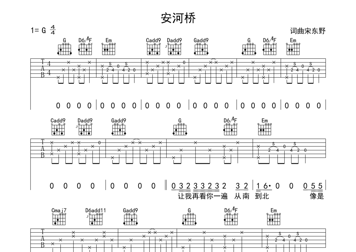 安和桥吉他谱 - 宋冬野 - G调吉他弹唱谱 - 原版