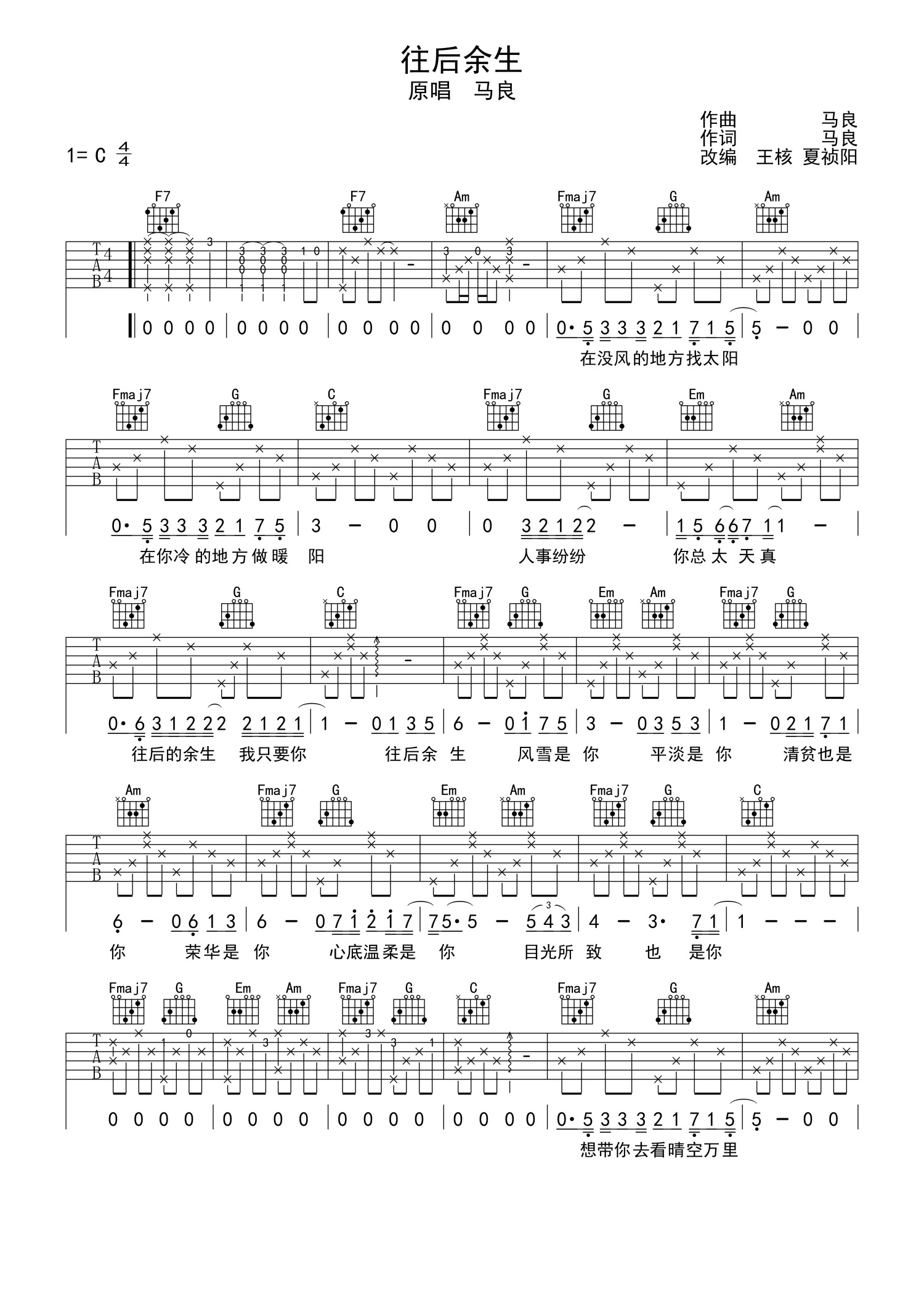 • 往后余生吉他谱 - 马良 - C调吉他弹唱谱第1张