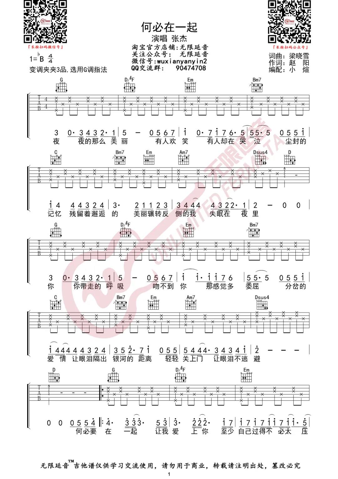 琴谱网为您精心推荐 何必在一起 高清图谱