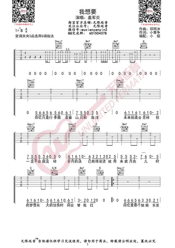 我想要吉他谱 - 盖君炎 - G调吉他弹唱谱