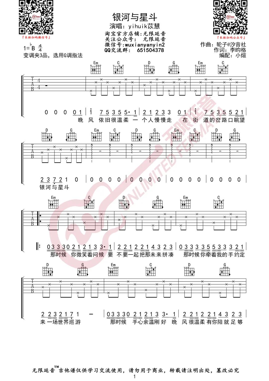 银河与星斗吉他谱 - yihuik苡慧演 - G调吉他弹唱谱