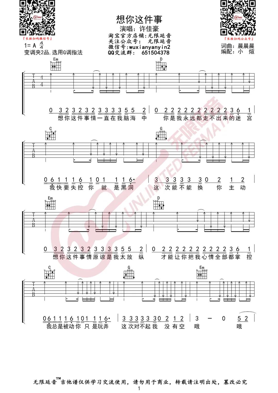 想你这件事吉他谱 - 许佳豪 - G调吉他弹唱谱