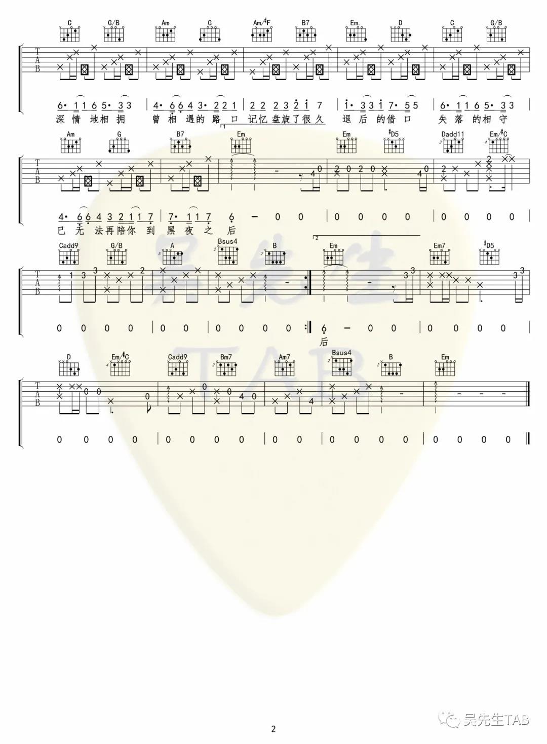 曲谱介绍: 王忻辰,苏星婕《落日与晚风》吉他弹唱谱,采用G调指法编配,共有2张高清图谱,免翻页排版设计。