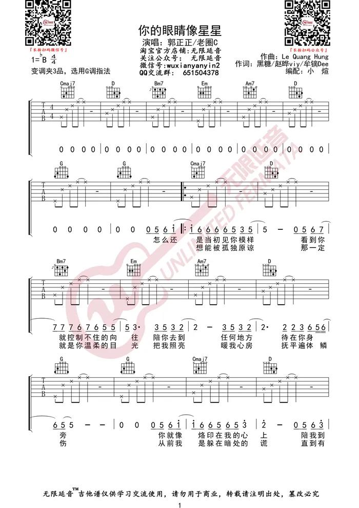 你的眼睛像星星吉他谱 - 郭正正,老圈C - G调吉他弹唱谱