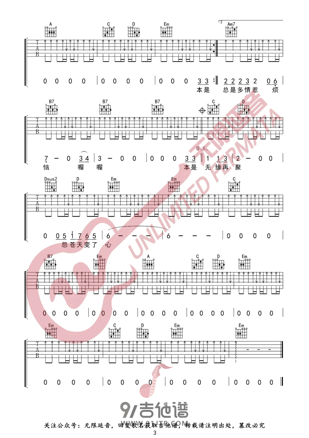 当前位置:琴谱网>吉他弹唱>怨苍天变了心