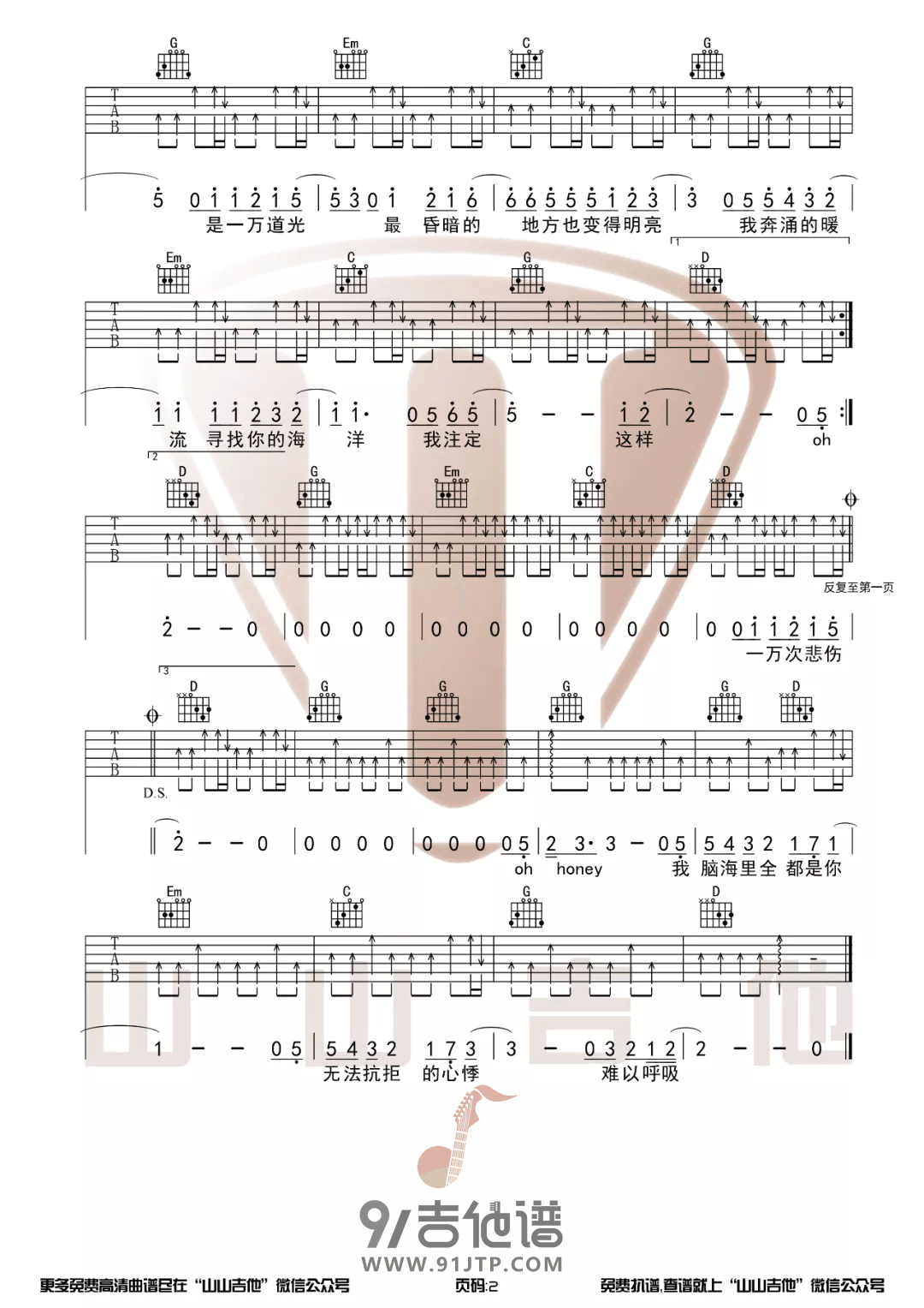 当前位置:琴谱网>吉他弹唱>一万次悲伤