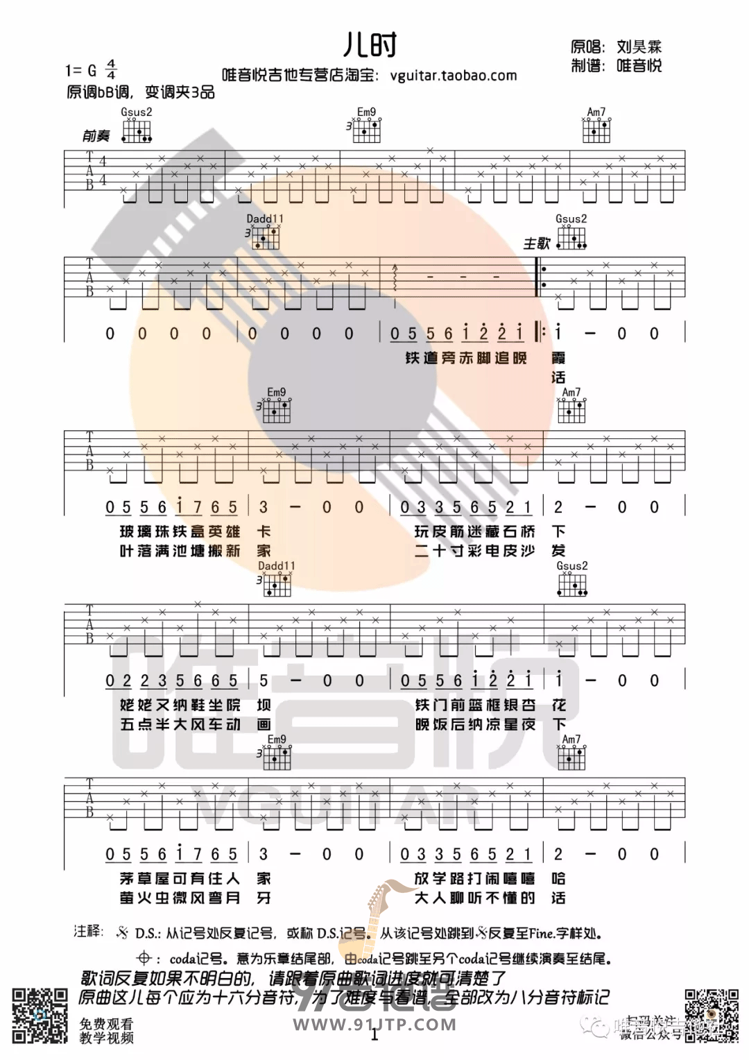 儿时吉他谱 - 刘昊霖 - G调吉他弹唱谱