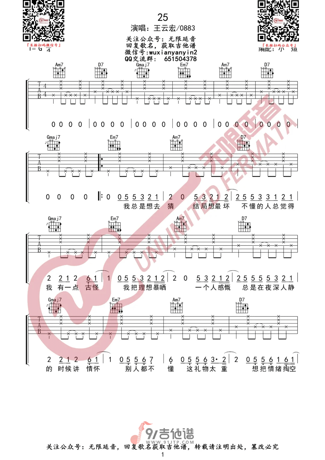当前位置:琴谱网>吉他弹唱>25