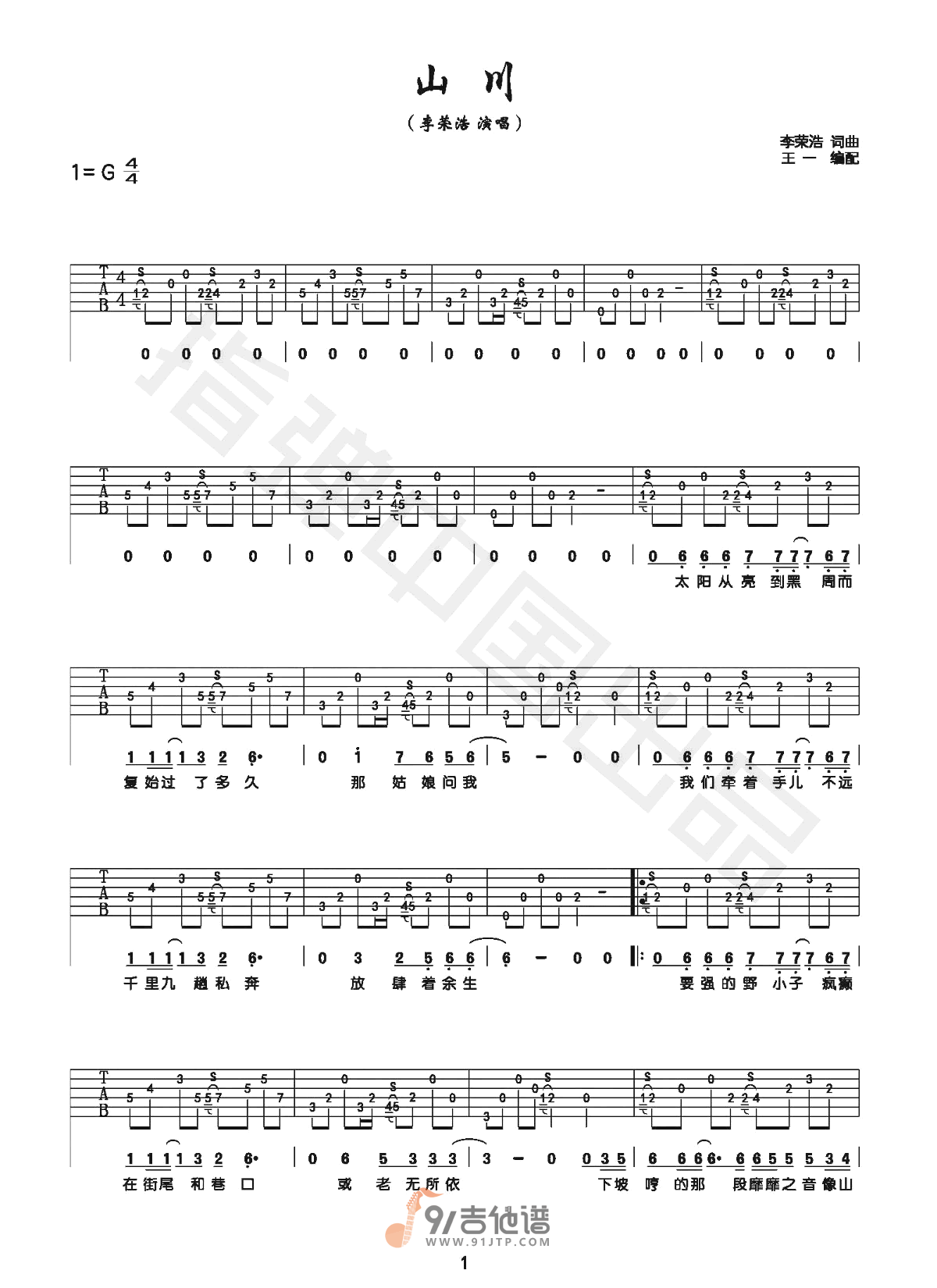 曲谱介绍: 《山川》是由李荣浩创作并演唱的一首最新单曲,听这首歌,感动于李荣浩把这些都写进了歌里,把这些孤独、傲气都唱到心里。要强的野小子,疯癫在街尾和巷口,或老无所依。下坡哼的那段靡靡之音,像山脚下一颗石头。 先看视频 再看谱吧 哈哈