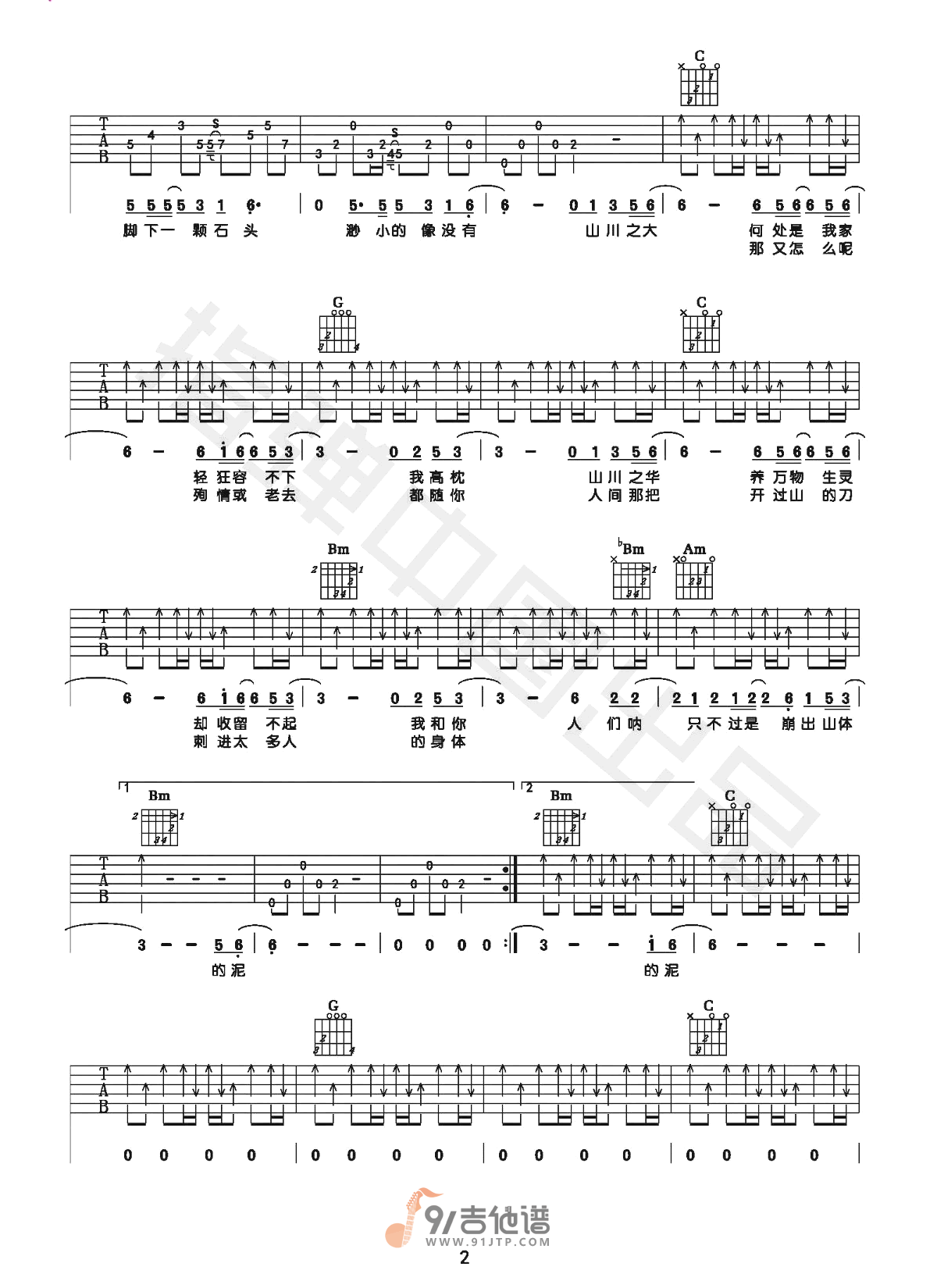 当前位置:琴谱网>吉他弹唱>山川