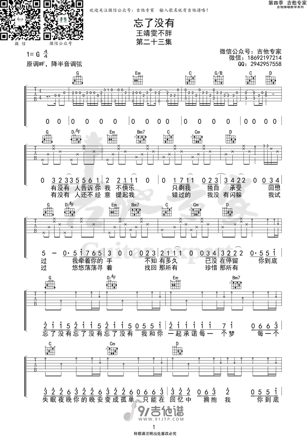 忘了没有吉他谱 - Guitar - G调吉他弹唱谱