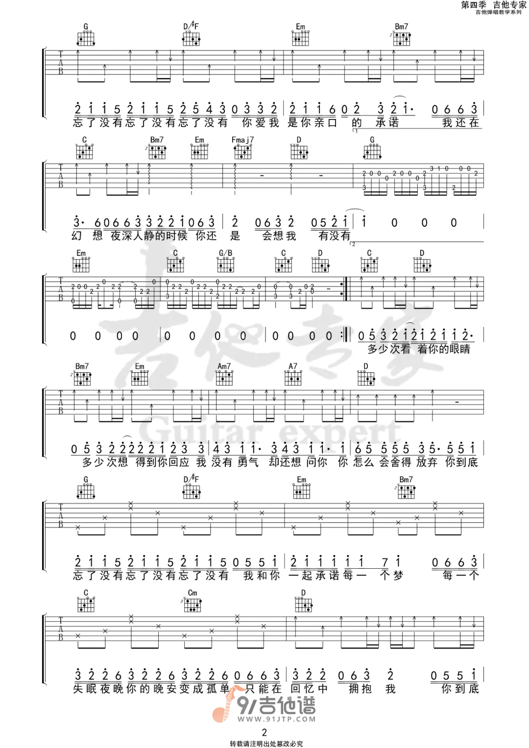 当前位置:琴谱网>吉他弹唱>忘了没有
