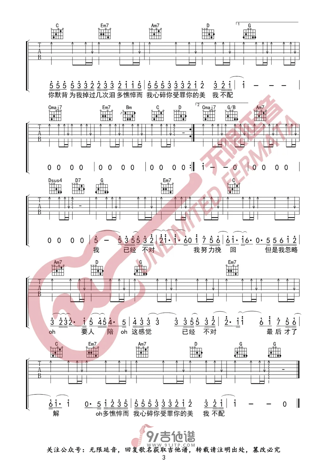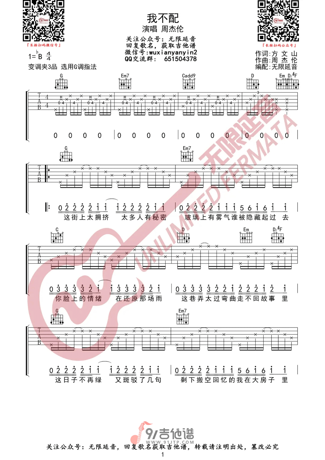 我不配吉他谱 - Guitar - G调吉他弹唱谱 - 原版