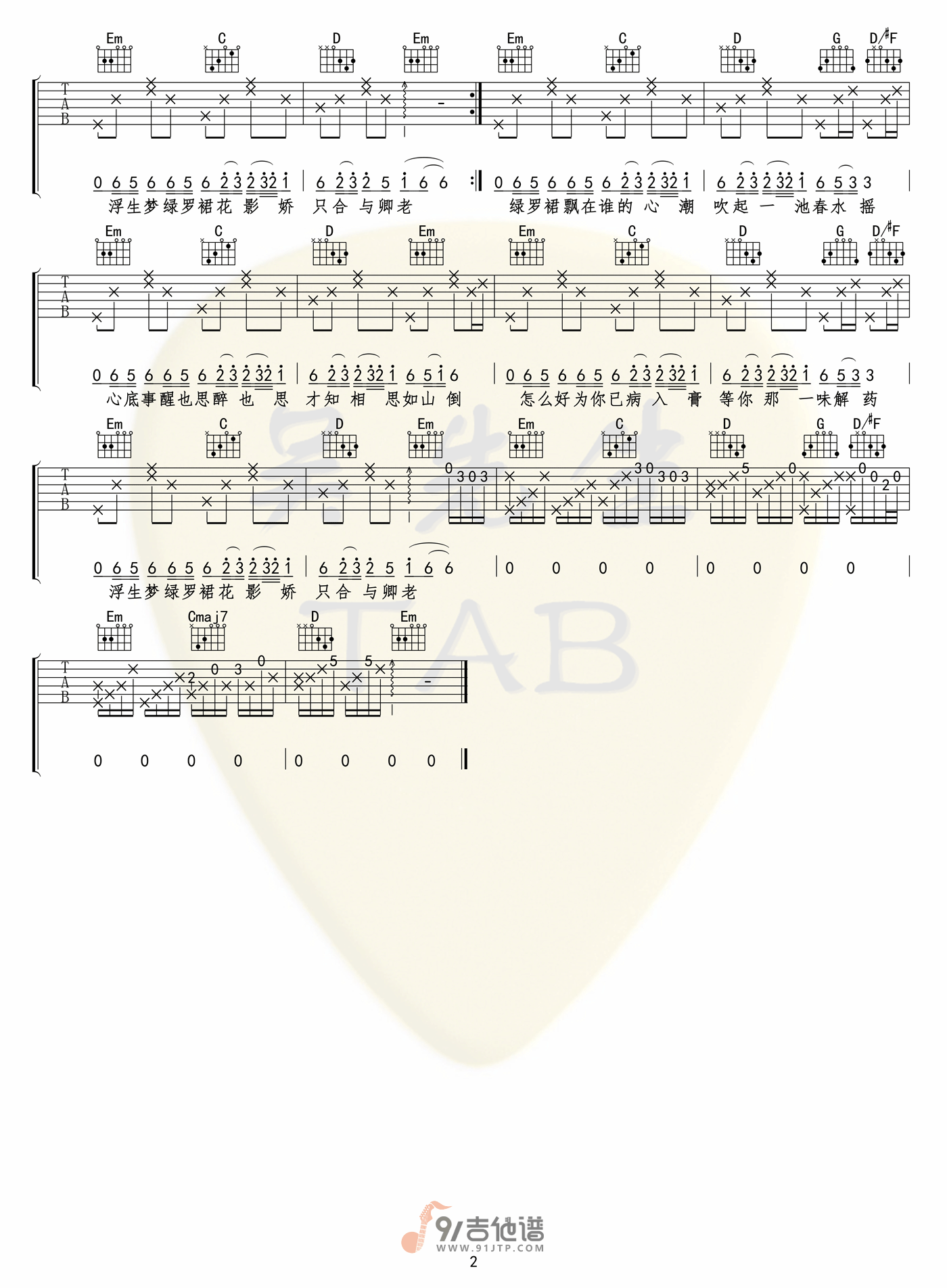 当前位置:琴谱网>吉他弹唱>折枝花满衣