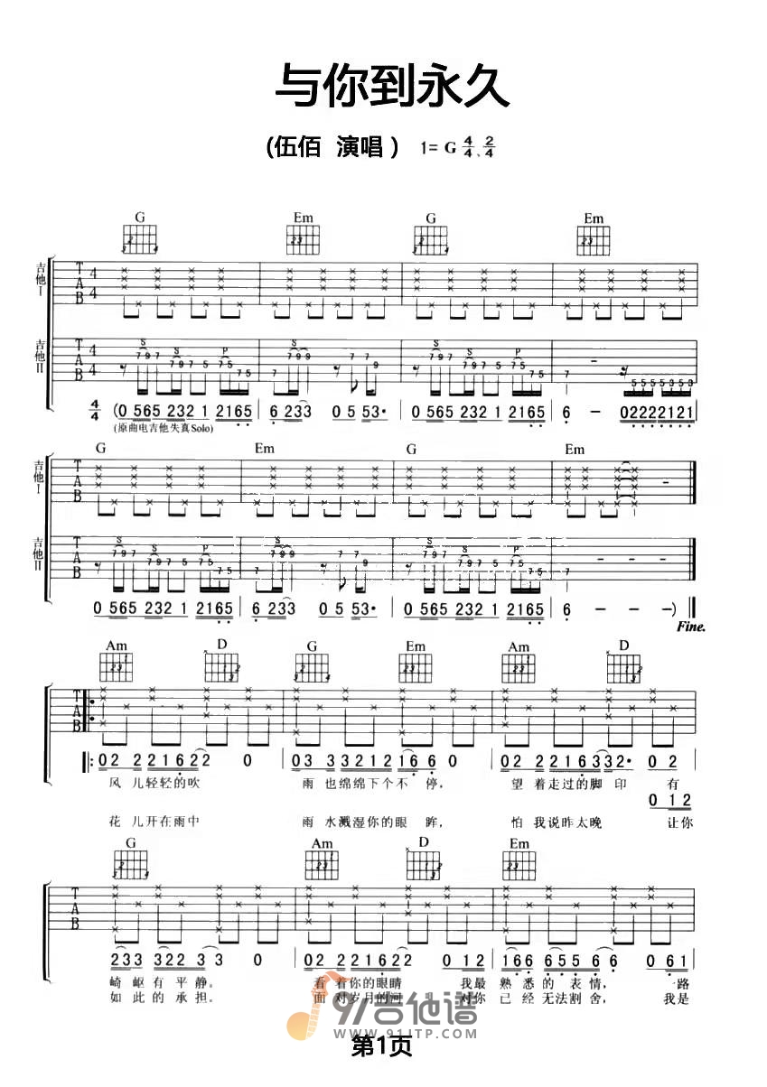 与你到永久吉他谱 - Guitar - G调吉他弹唱谱
