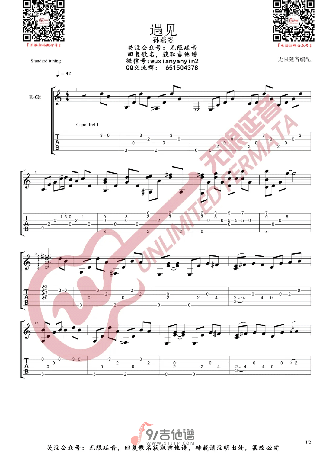 曲谱介绍: 《遇见》是电影《向左走向右走》的主题曲,由孙燕姿演唱的一首经典情歌。就像缘分一样,两个人一见钟情,你喜欢我,我喜欢你,那才是缘分。如果两个人都不喜欢,就算遇到几百万次都不是缘分,只是陌生人而已。这里是由@无限延音根据原曲改编制谱的指弹吉他版本,指法比较简单,旋律也依旧好听。