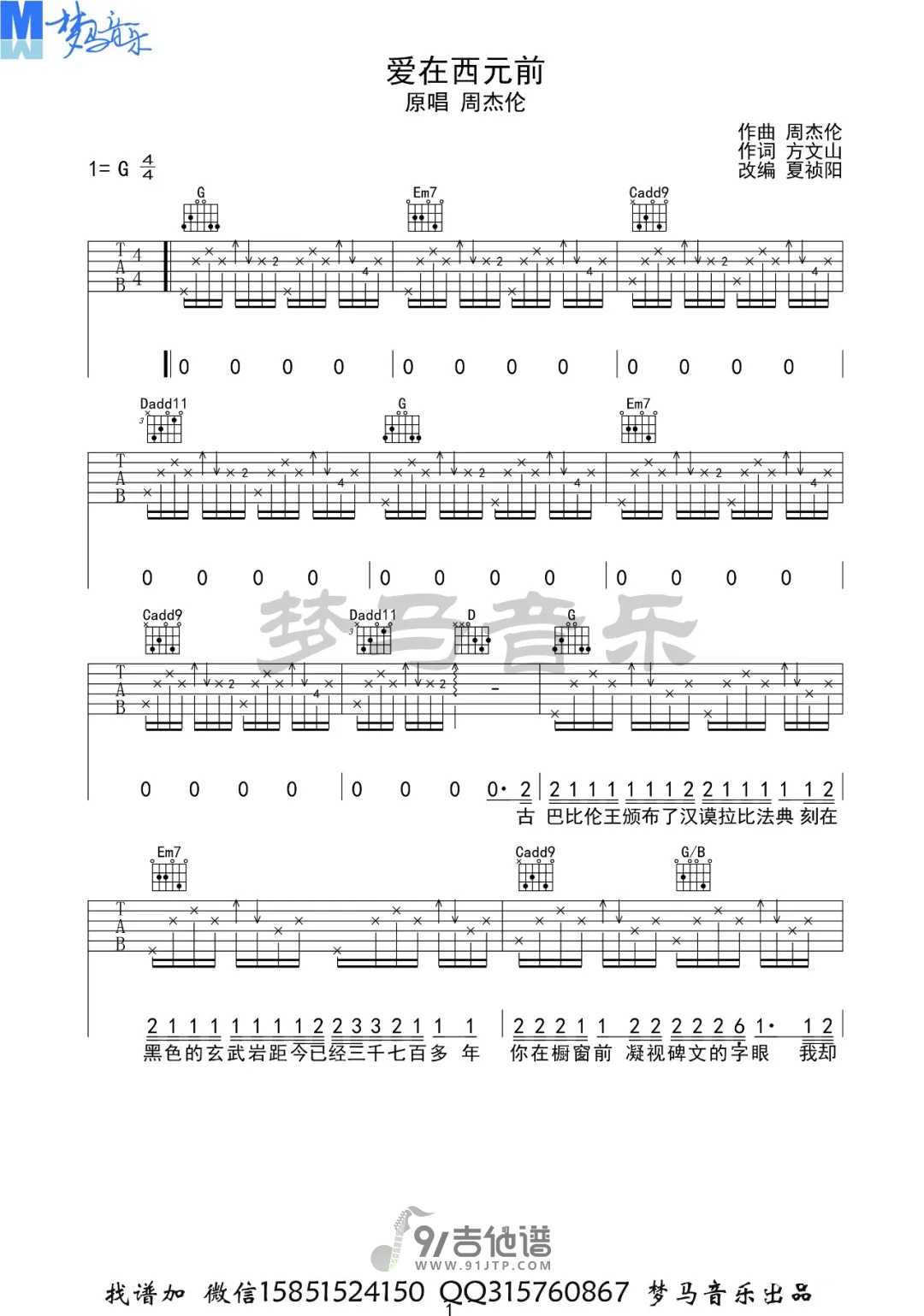 爱在西元前吉他谱 - Guitar - G调吉他弹唱谱 - 原版