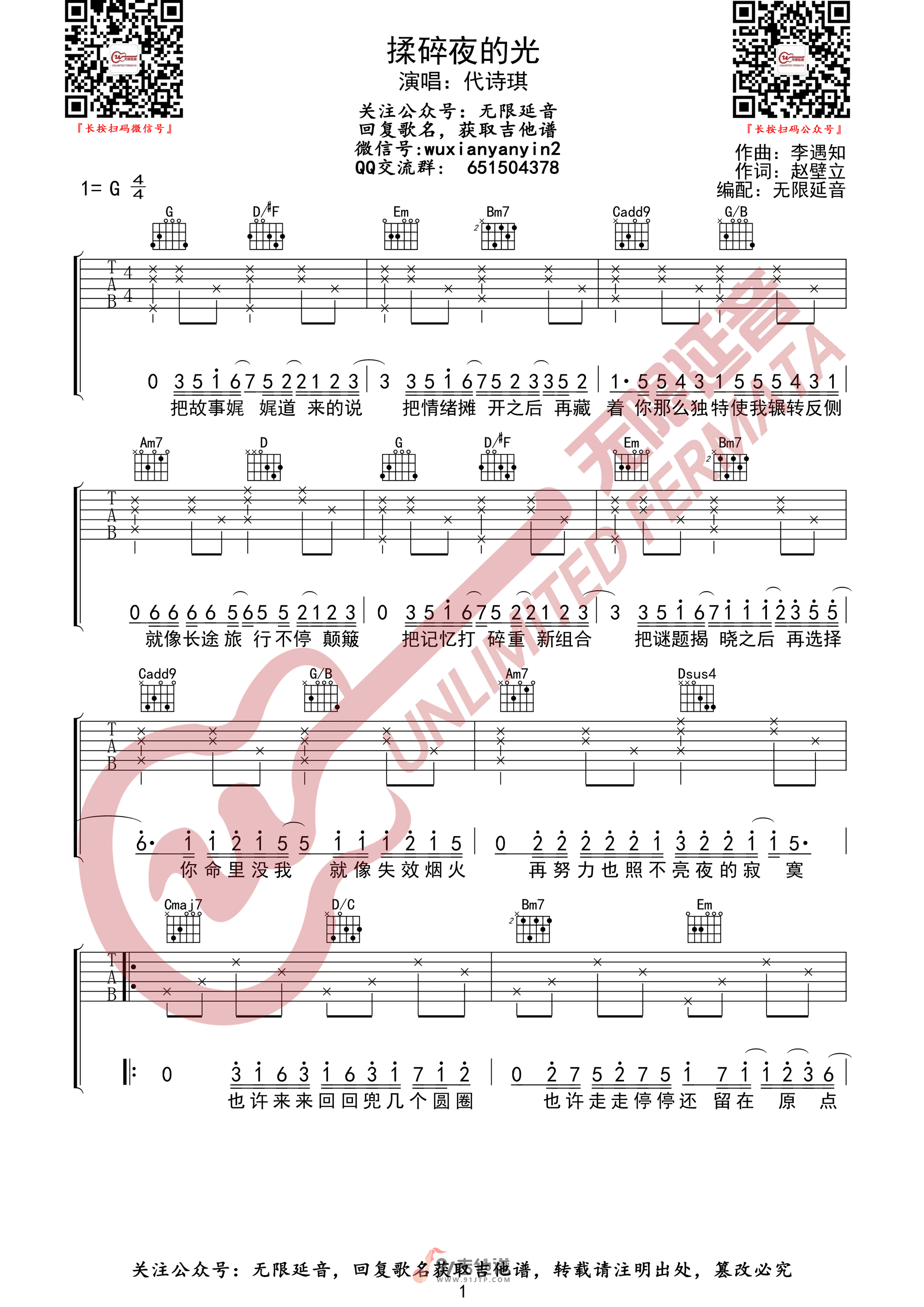 曲谱介绍: 《揉碎夜的光》吉他谱分享,《揉碎夜的光》是由代诗琪演唱的一首歌曲。