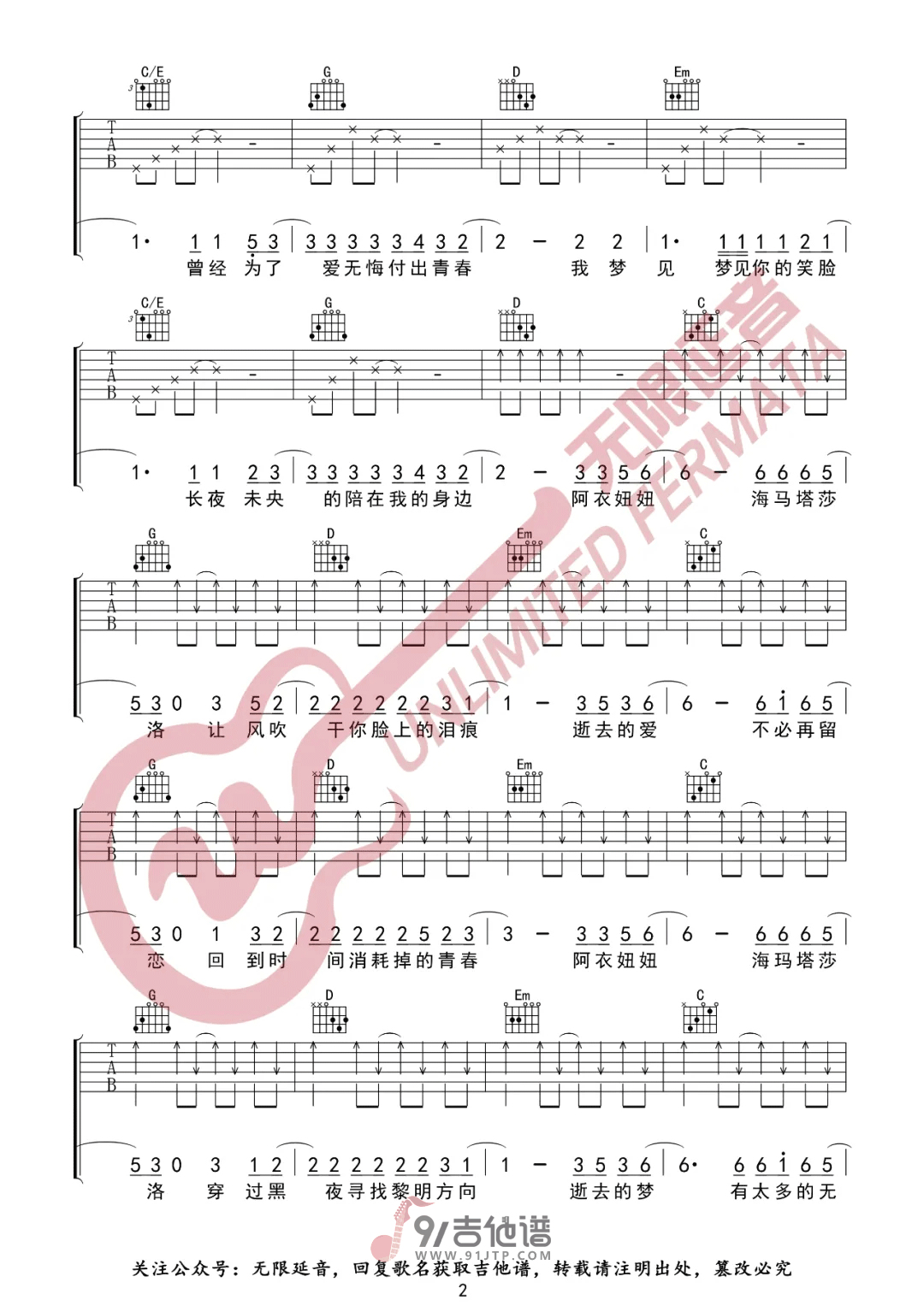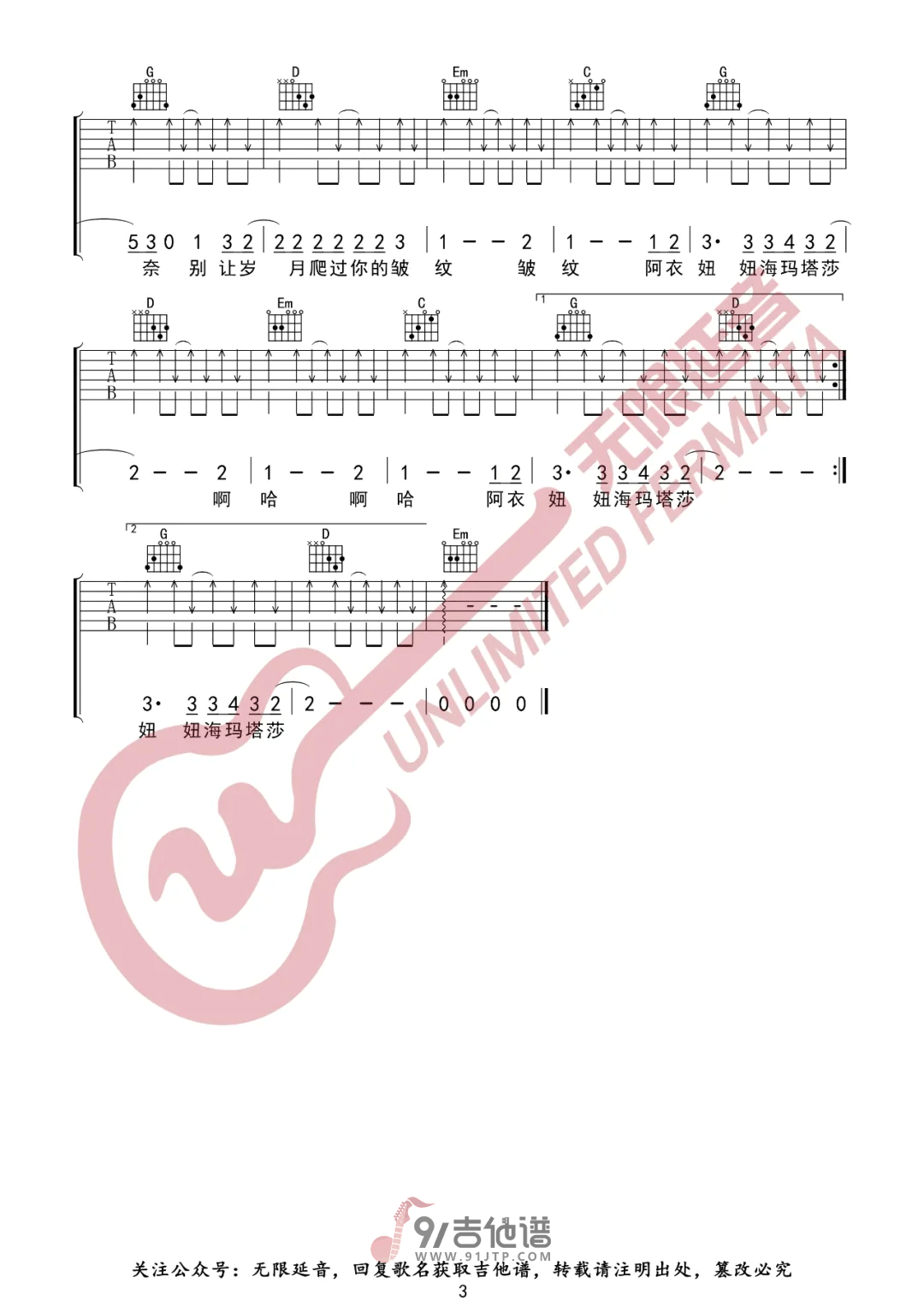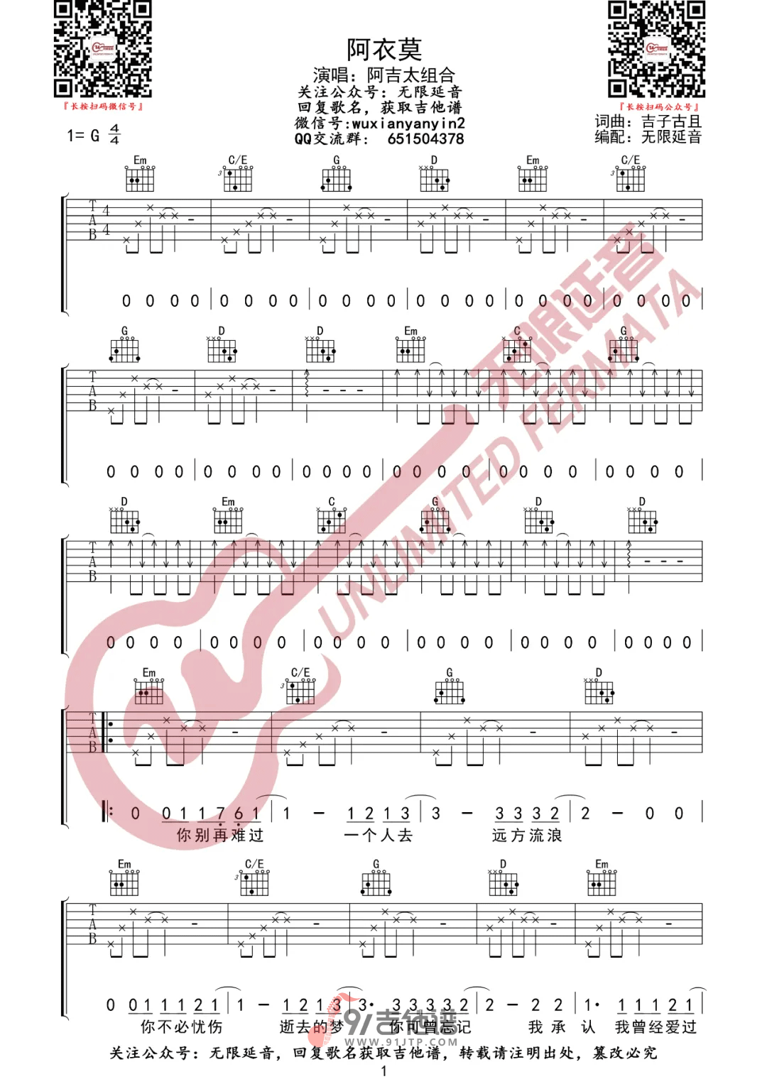 阿衣莫吉他谱 - Guitar - G调吉他弹唱谱
