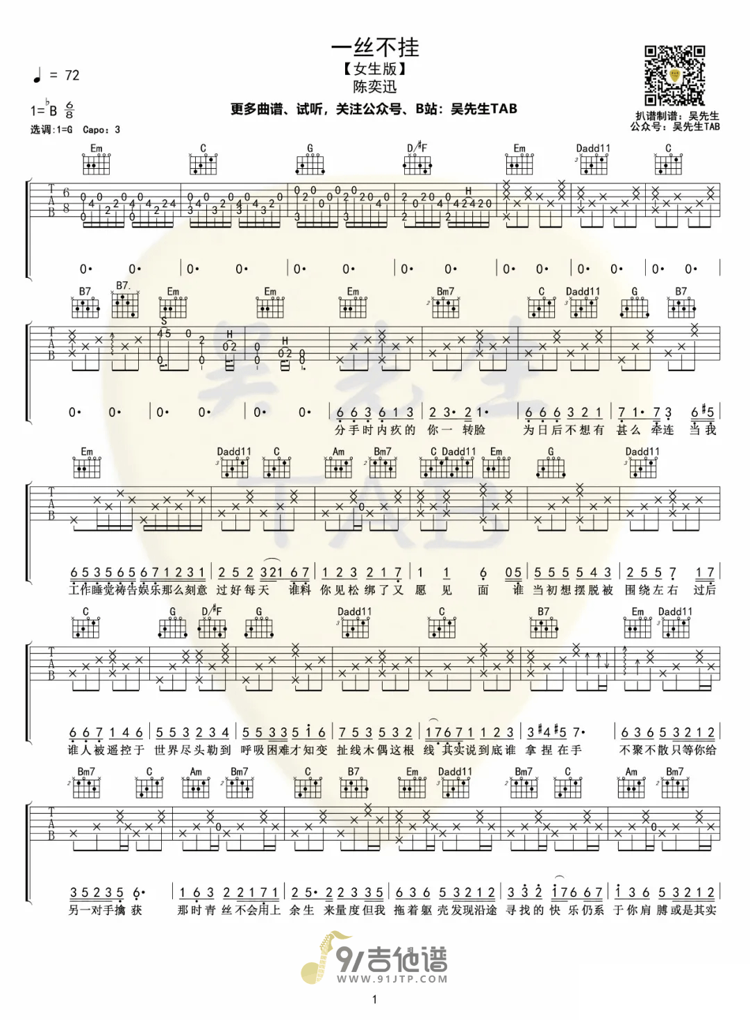 当前位置:琴谱网>吉他弹唱>一丝不挂