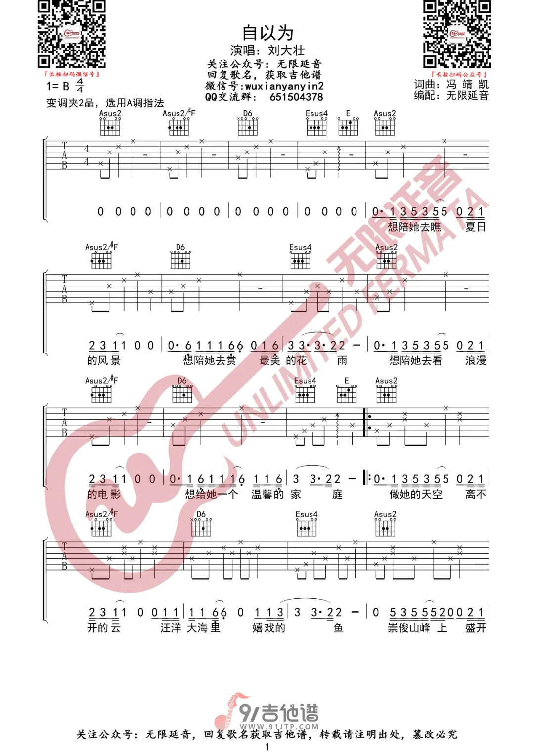 曲谱介绍: 自以为吉他谱分享,《自以为》是由刘大壮演唱的一首歌曲,刘大壮的歌总给人一种特别的烟火气,与俗不可耐的烟火气中又透出丝丝与众不同。与众不同的是一些通透,一些明了,一些你以为知道其实还未曾参透的生活道理。歌曲原调为B调,这里采用了A调指法进行编配,演唱时夹变调夹2品可回到原调,整体难度适中。