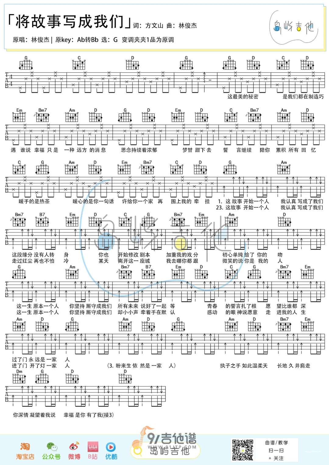 将故事写成我们吉他谱 - Guitar - G调吉他弹唱谱