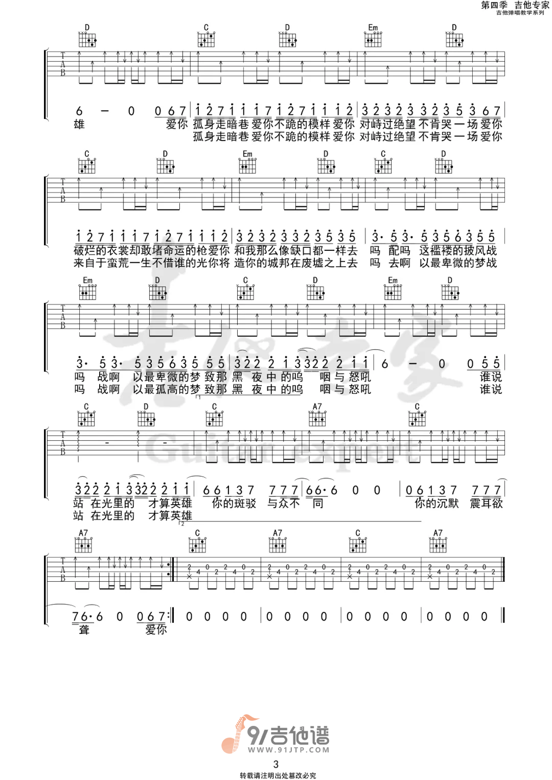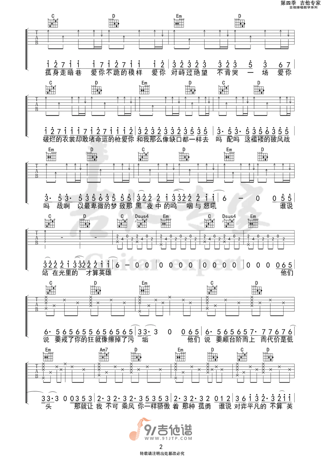 当前位置:琴谱网>吉他弹唱>孤勇者