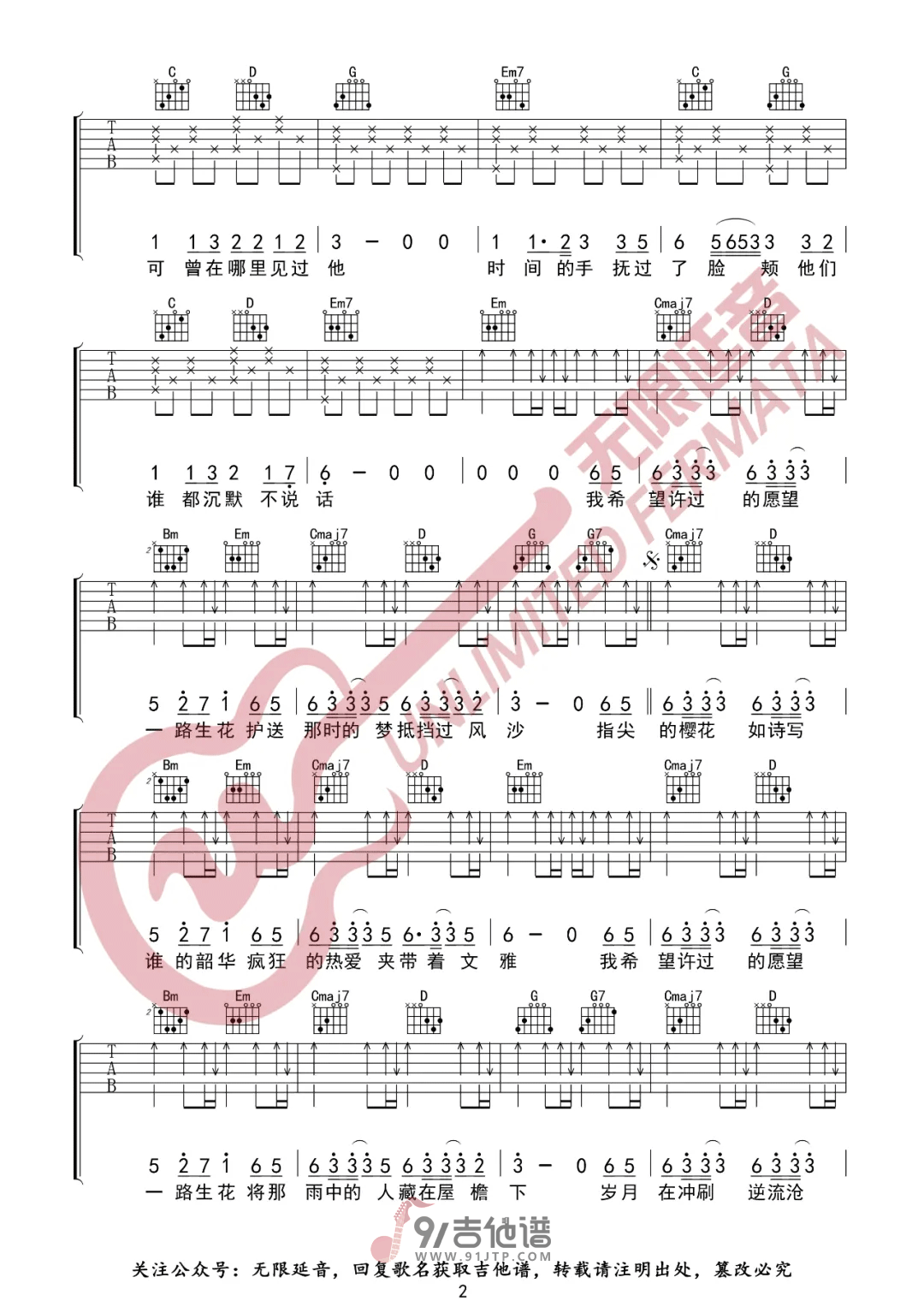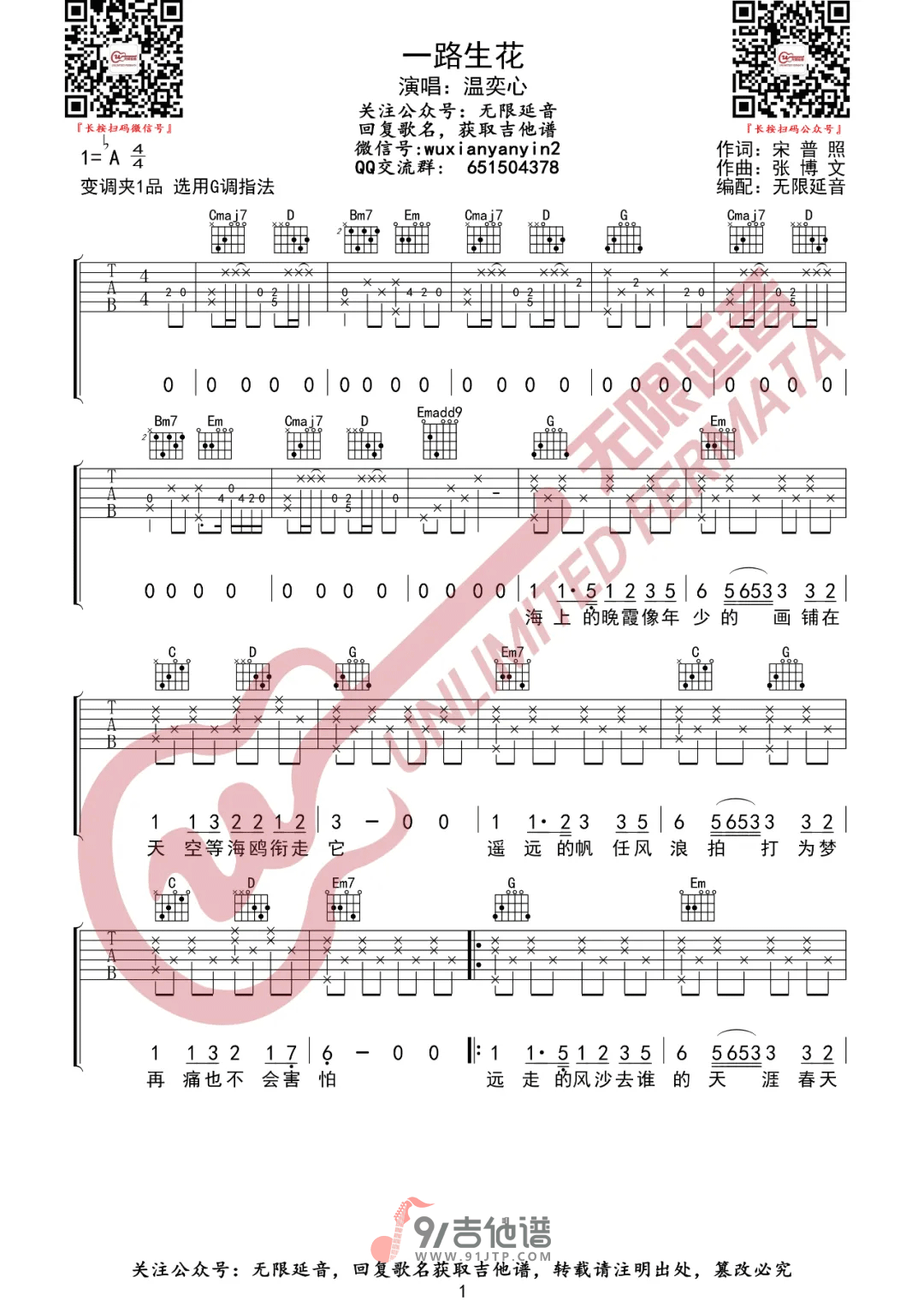 一路生花吉他谱 - Guitar - G调吉他弹唱谱
