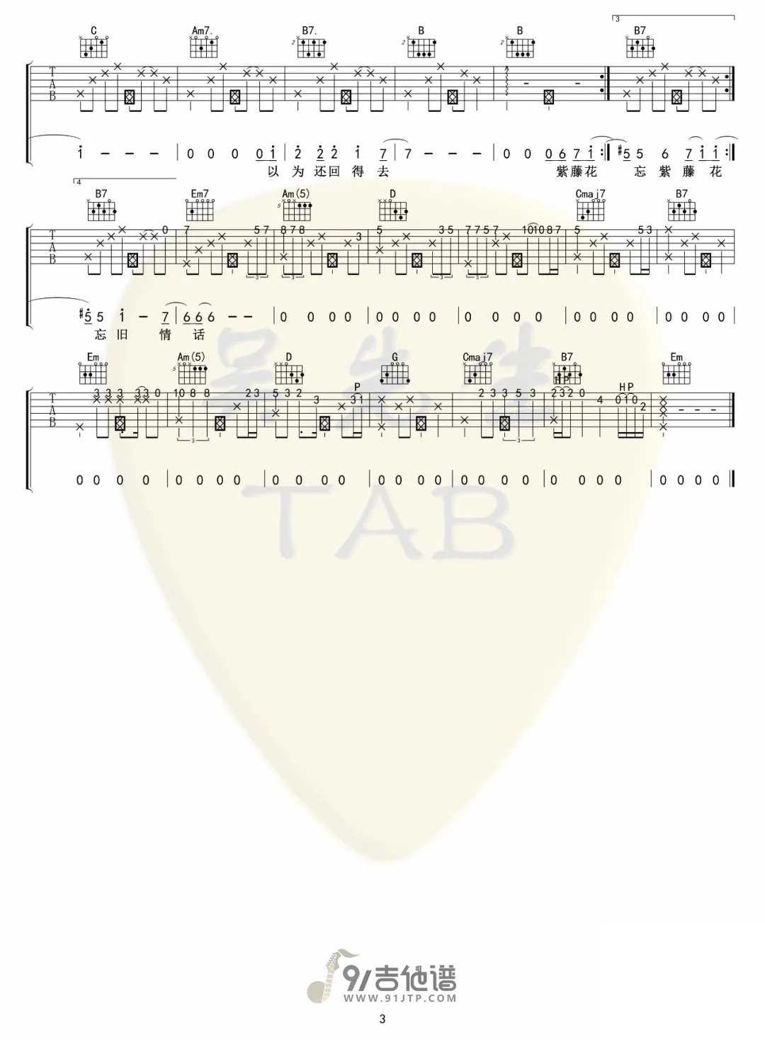 当前位置:琴谱网>吉他弹唱>紫藤花