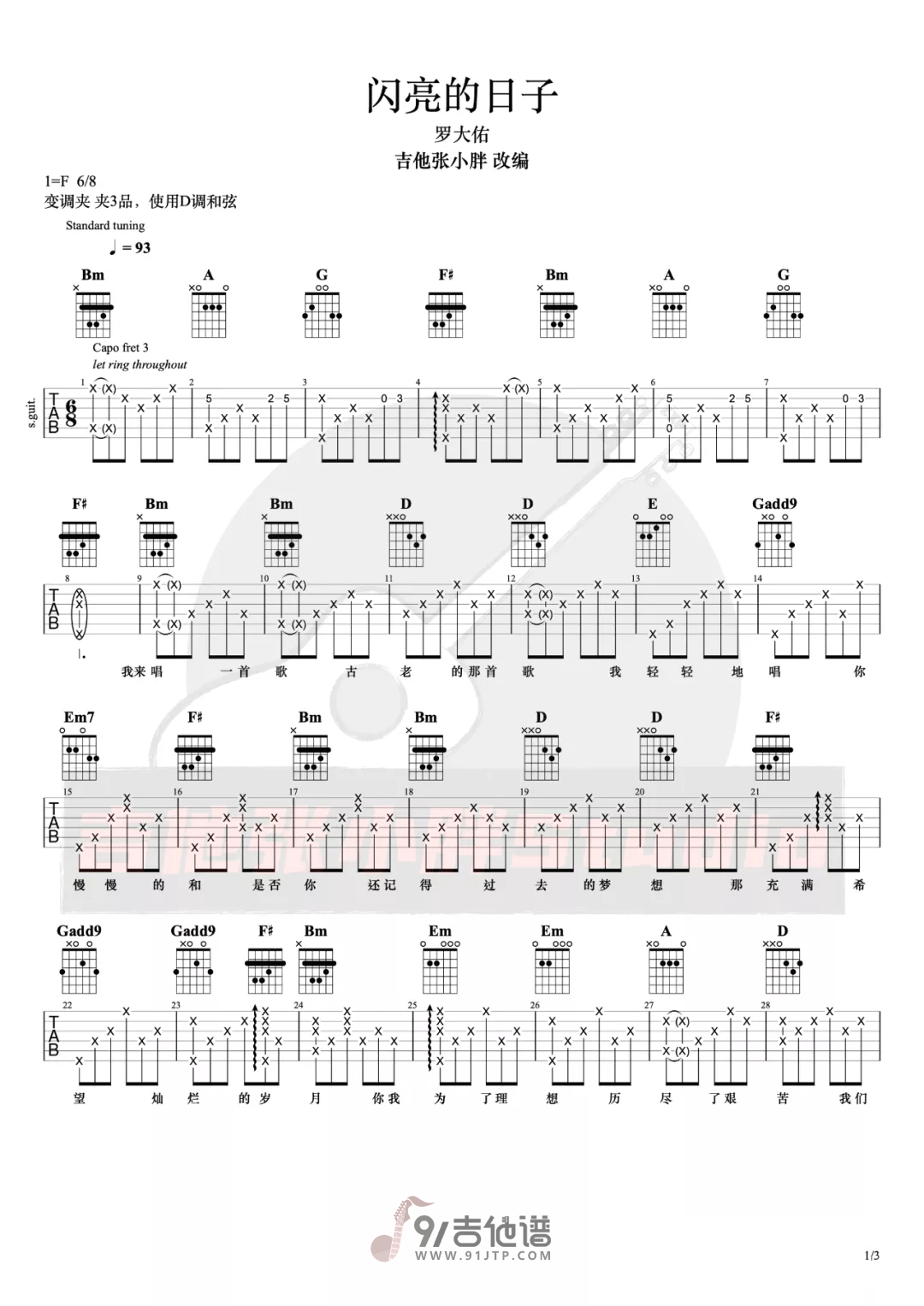 闪亮的日子吉他谱 - Guitar - D调吉他弹唱谱 - 原版