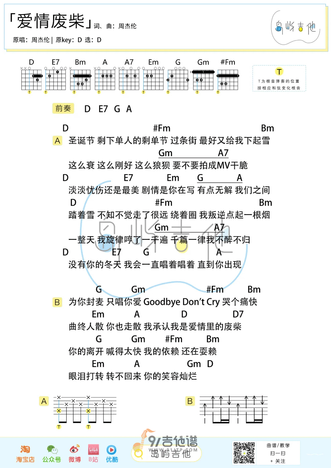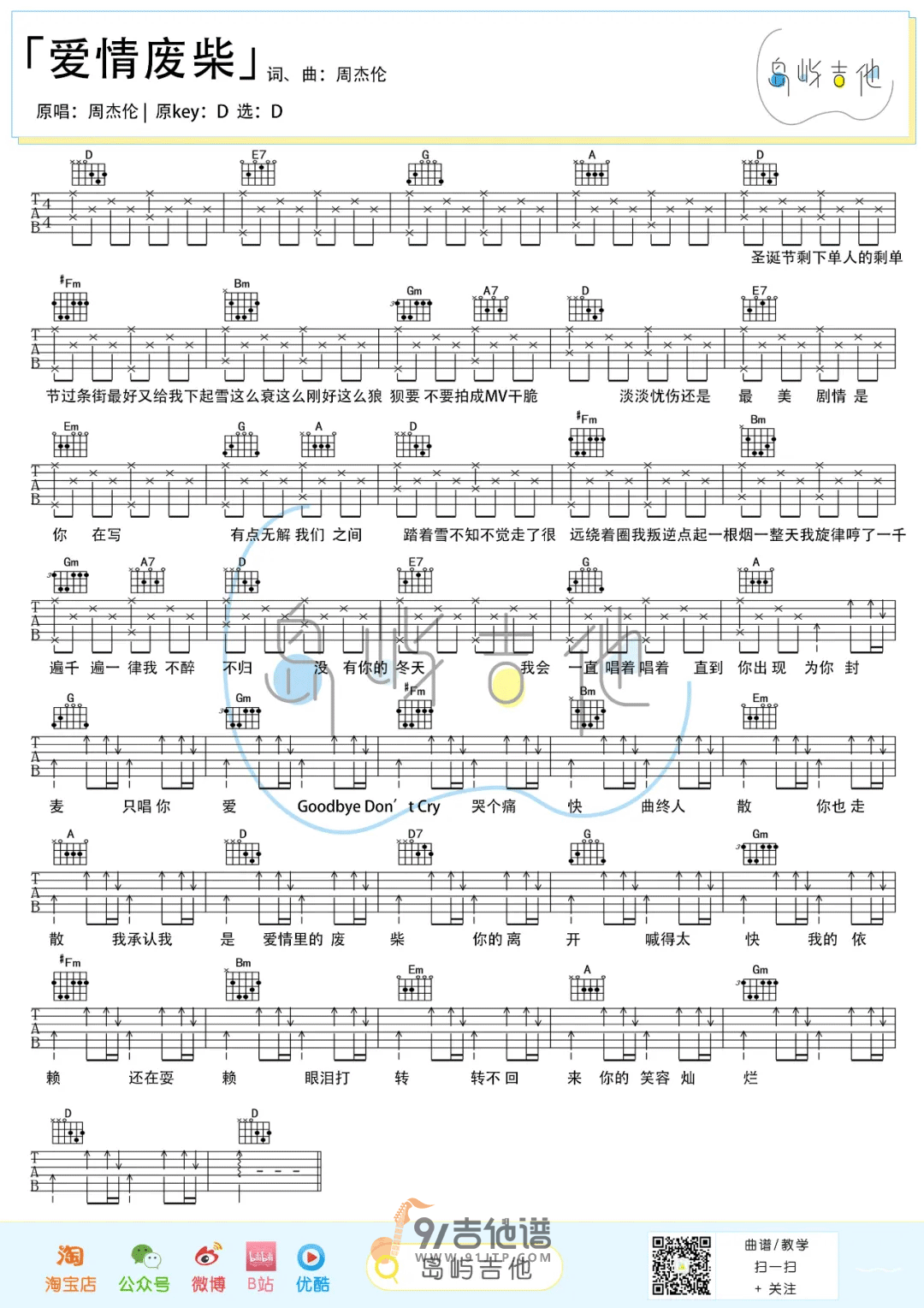 爱情废柴吉他谱 - Guitar - D调吉他弹唱谱