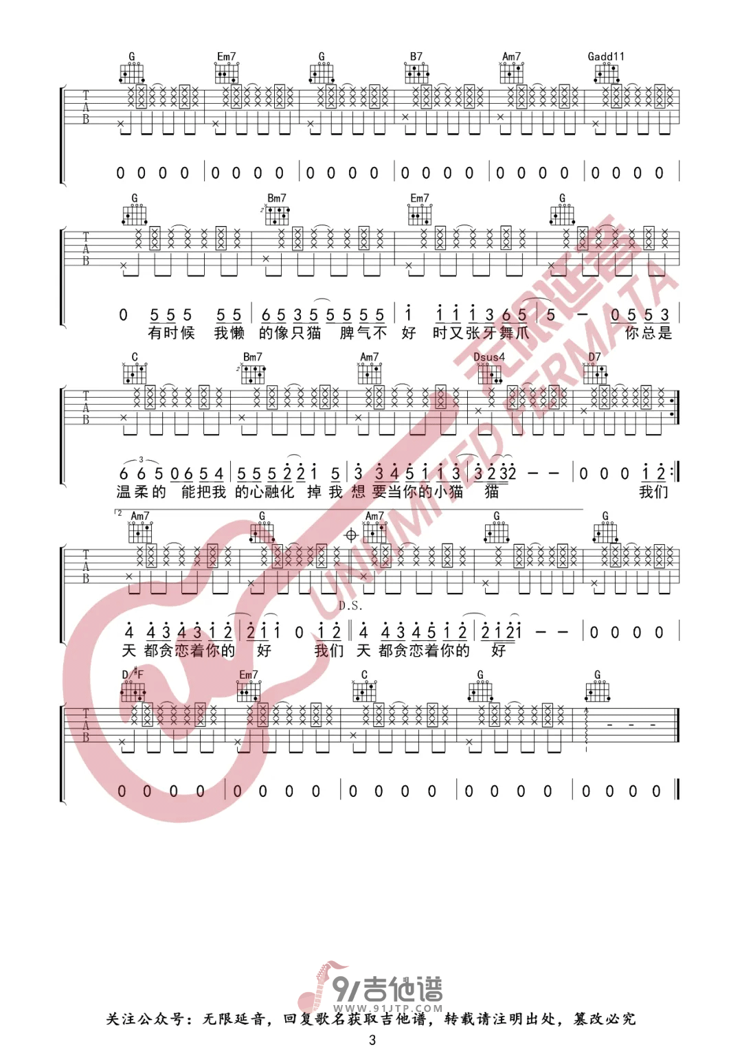 学猫叫吉他谱 - Guitar - G调吉他弹唱谱
