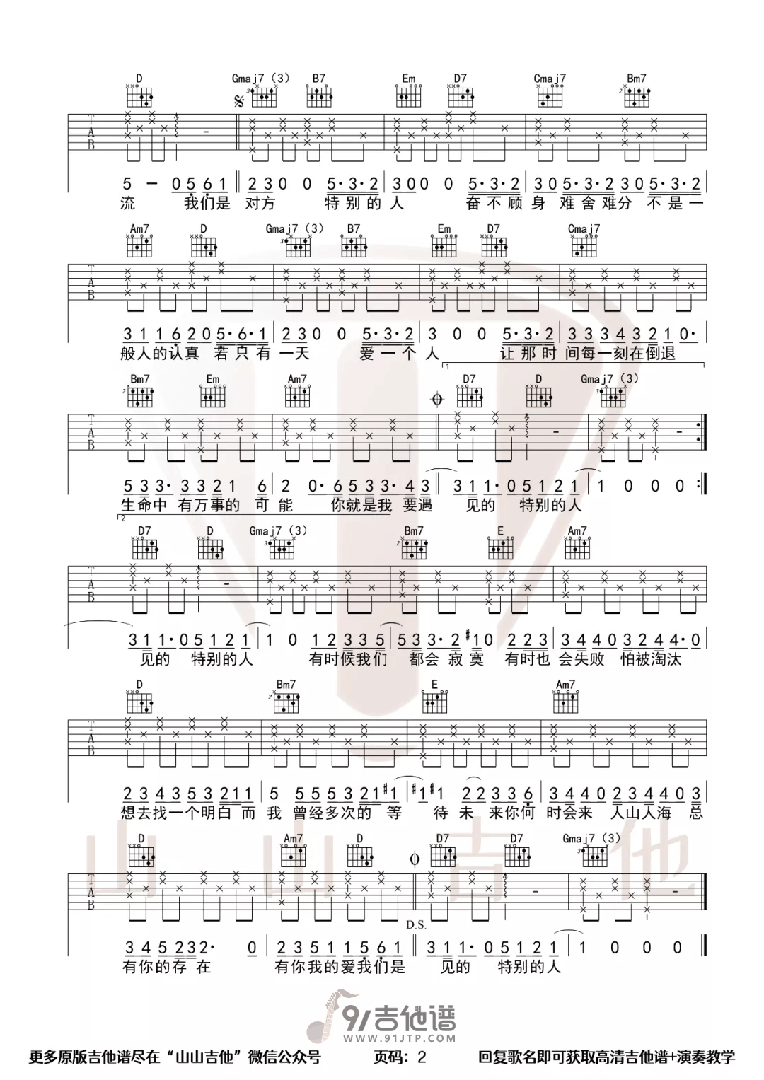 当前位置:琴谱网>吉他弹唱>特别的人