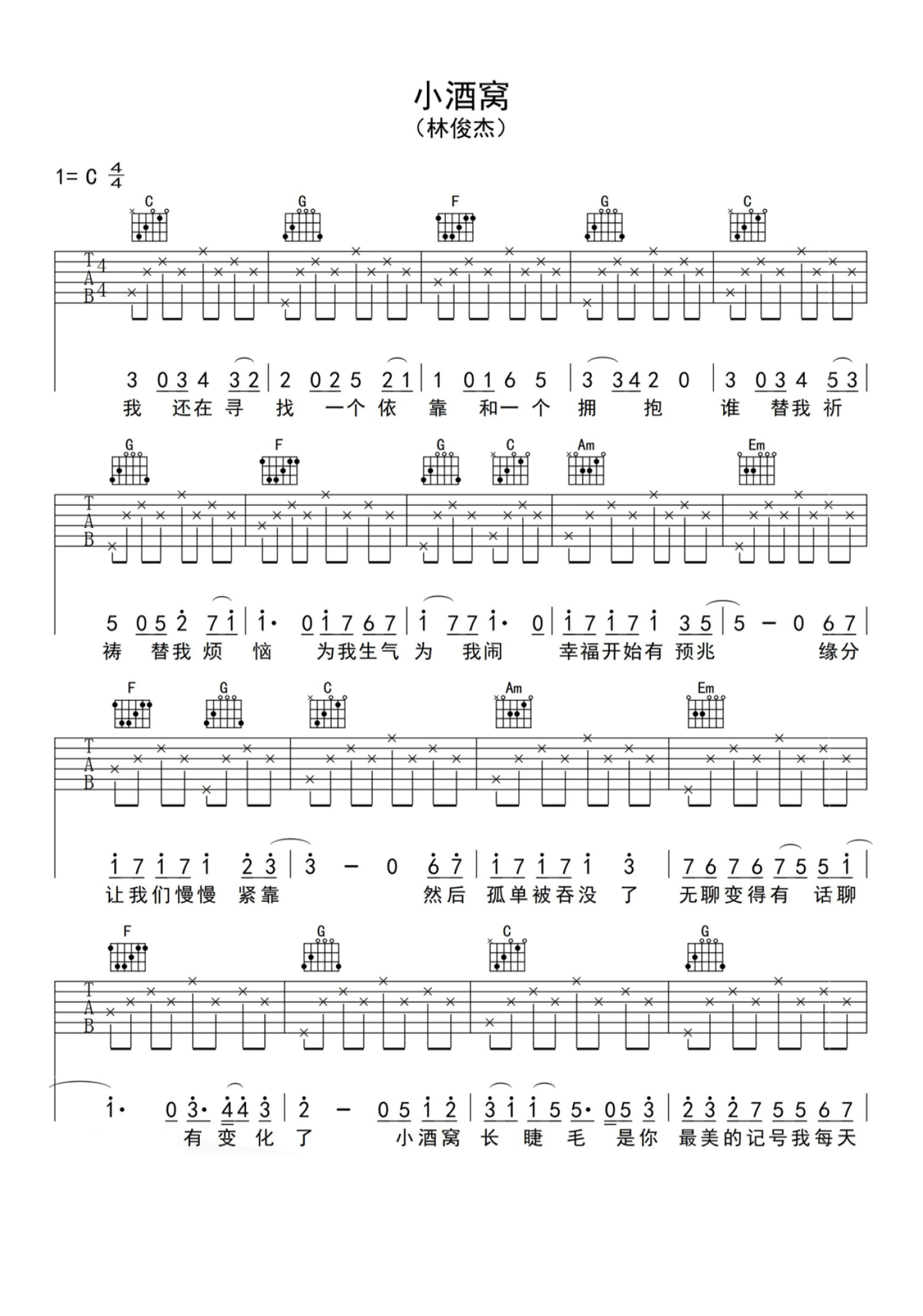 • 小酒窝吉他谱 - 林俊杰 - C调吉他弹唱谱第1张