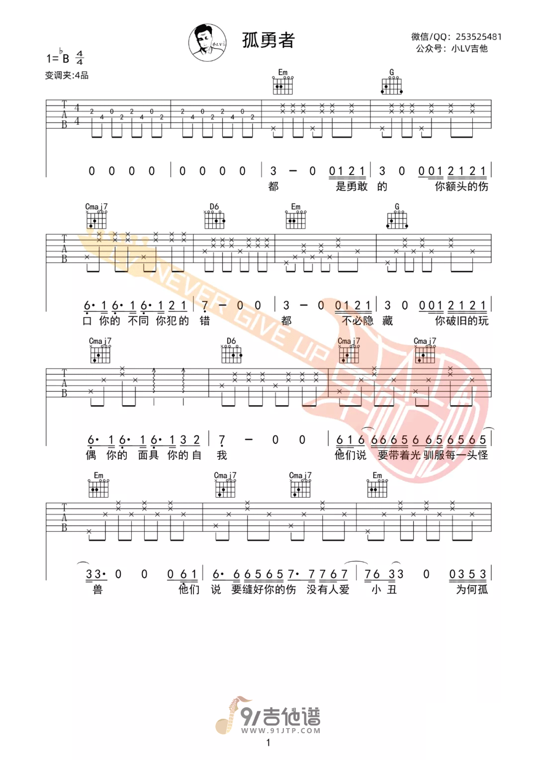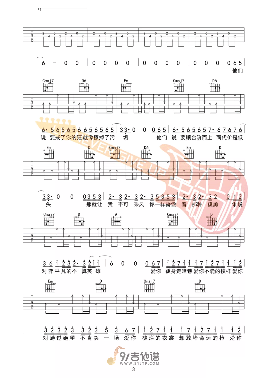 当前位置:琴谱网>吉他弹唱>孤勇者