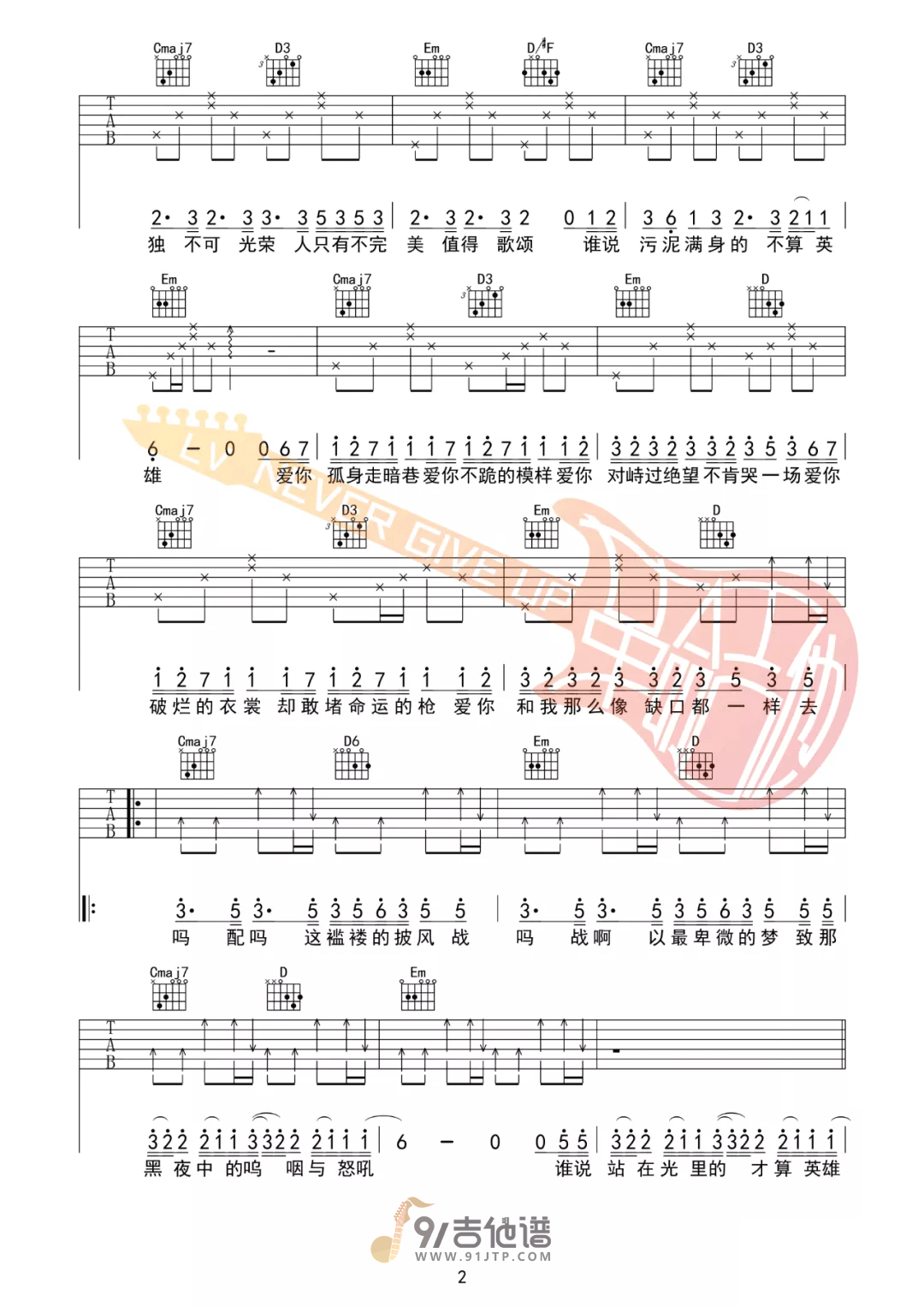 孤勇者吉他谱 - Guitar - G调吉他弹唱谱 - 原版