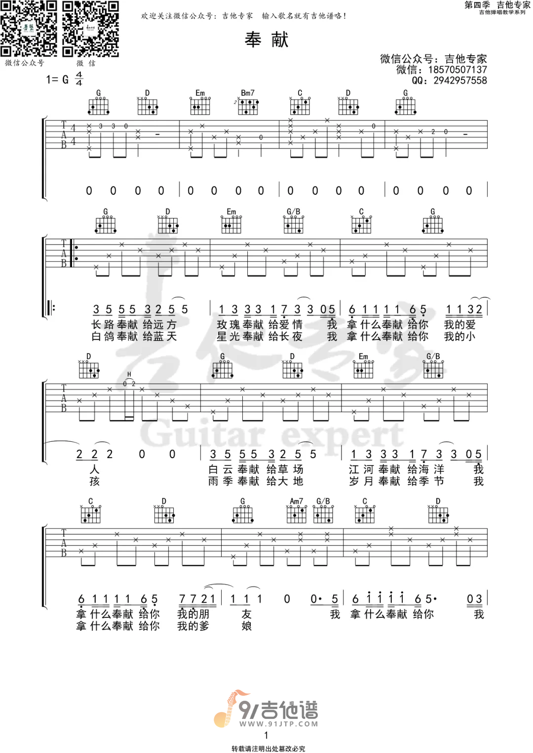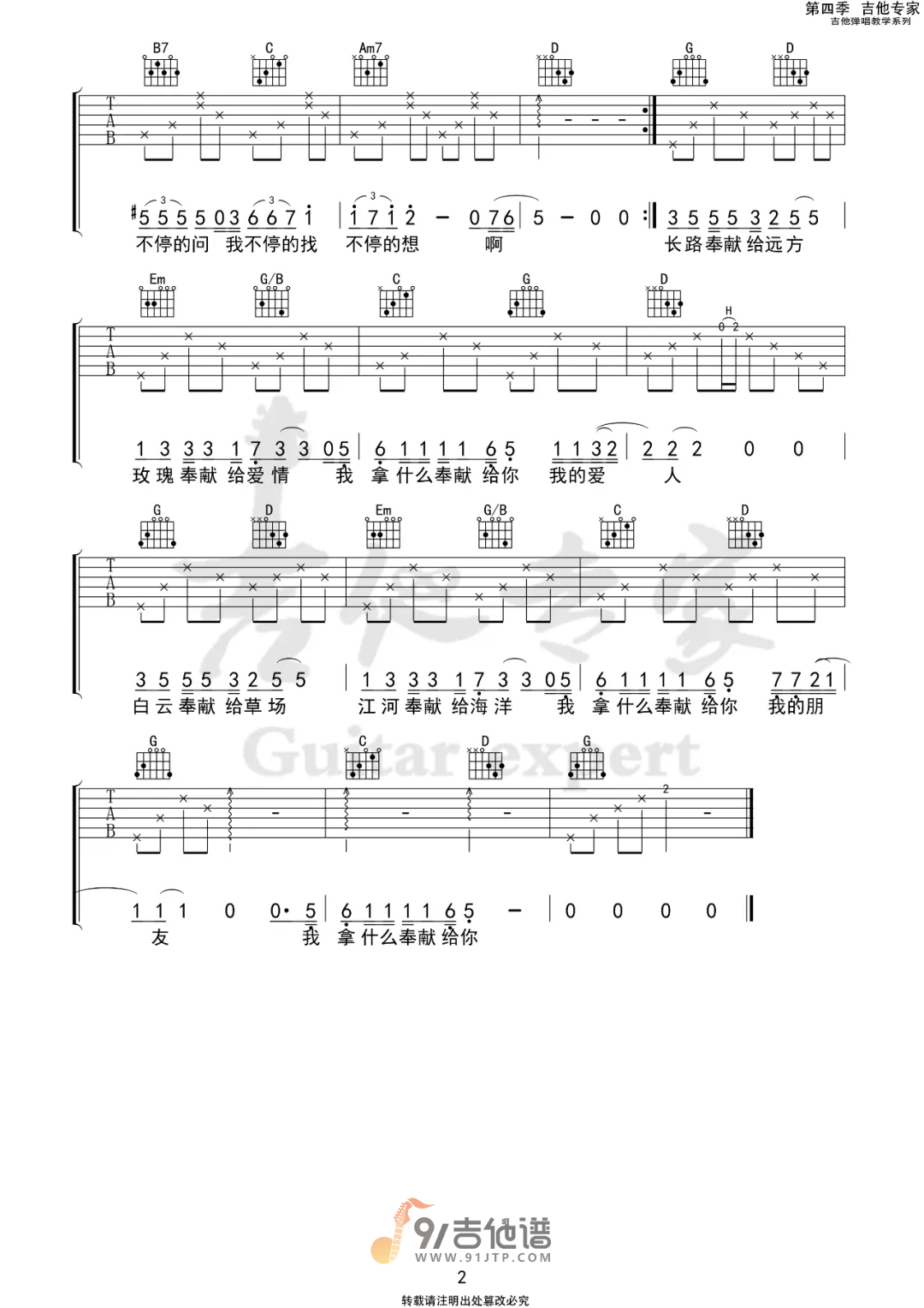 当前位置:琴谱网>吉他弹唱>奉献