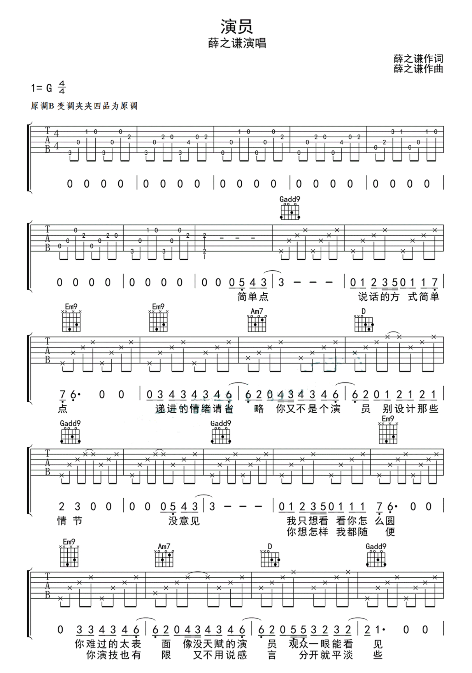 演员吉他谱 - 薛之谦 - G调吉他弹唱谱
