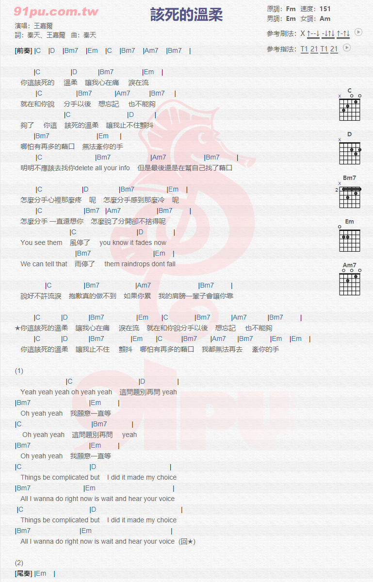 当前位置:琴谱网>吉他弹唱>该死的温柔